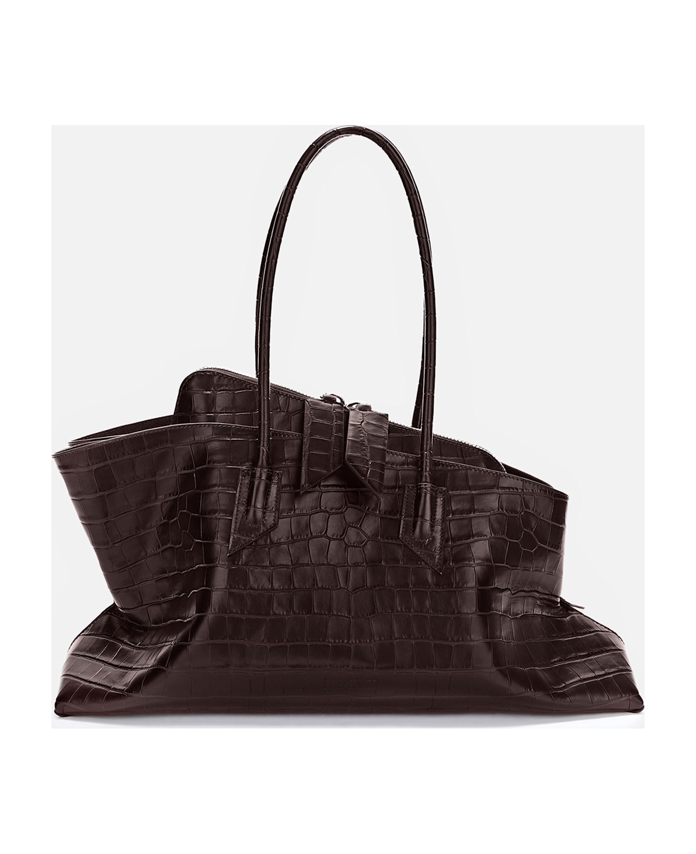 Shoulder bag in coffee-colored crocodile-print leather. Two wide tubular top handles. Internal zip pocket. Made in Italy. Composition: 100% Calf Leather