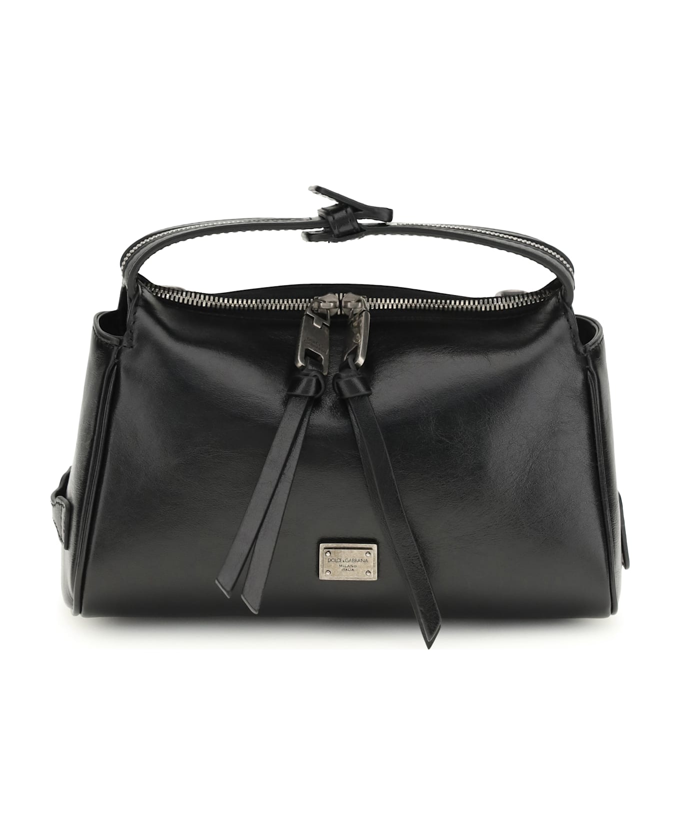 The vittoria mini handbag by dolce&gabbana is an elegant and practical accessory, with a leather handle and adjustable and removable shoulder strap for added versatility. the zip closure ensures security, while the vintage brass plating adds a touch of sophistication. the monogrammed exterior and foil stamping on the inside enhance the brand's distinctive design. the interior, complete with a flat pocket, offers convenient organization. a compact and sophisticated model, perfect for any occasion.