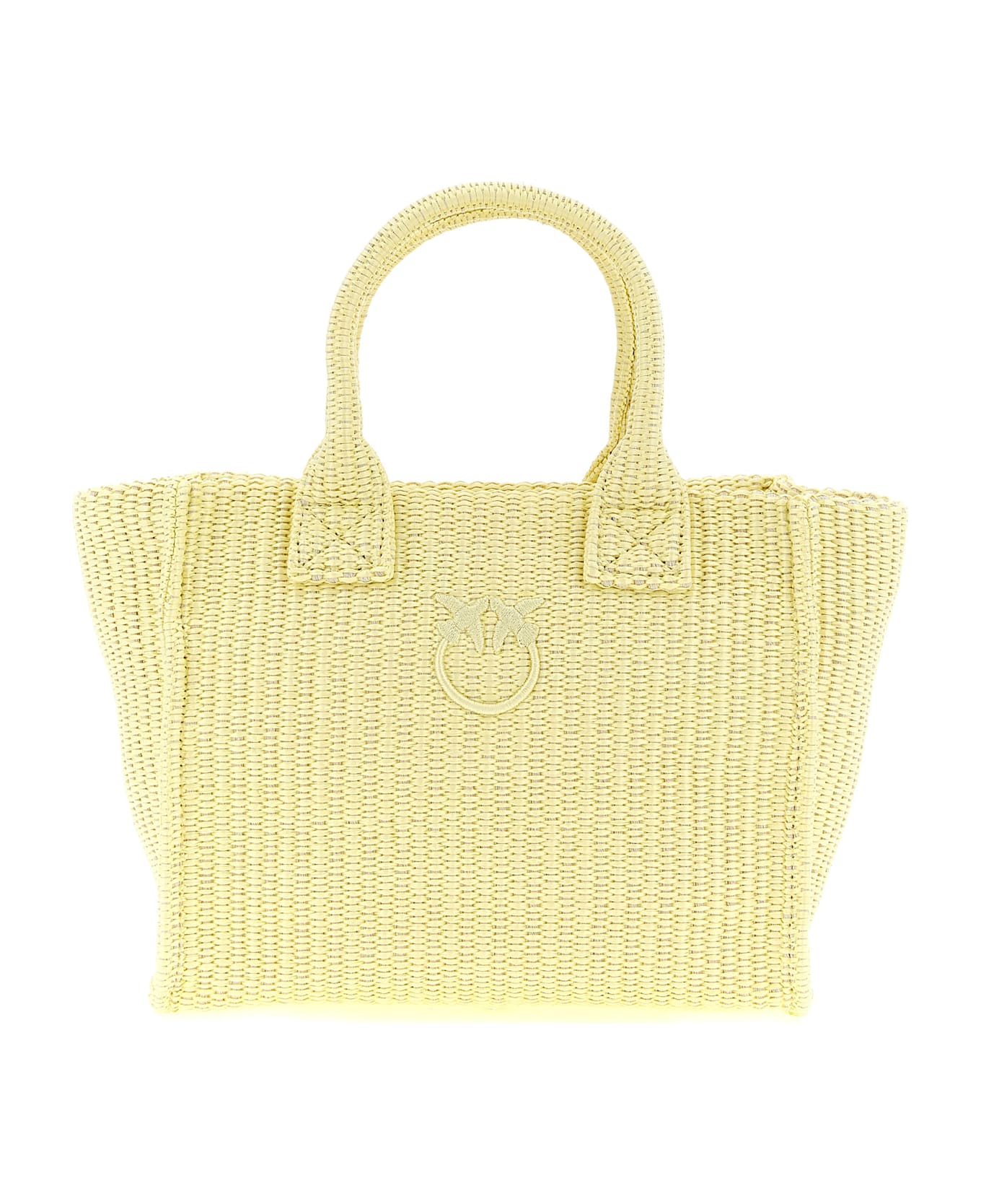 'Beach' mini shopping bag in woven raffia with tonal 'Love Birds Diamond' embroidery on the front, double fixed tubular handle, top zip closure, lining, two inner pockets. Handcrafted product, any imperfections are to be considered characteristics of uniqueness.