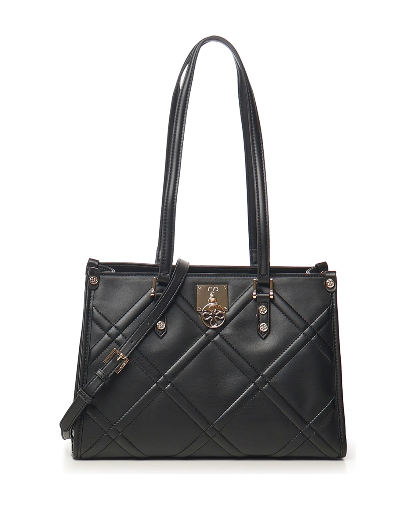 - Made of nappa leather with embossed quilting - Zip closure - Adjustable and removable shoulder strap - Top handles - Logo details - Internal zip pocket - Color: Black