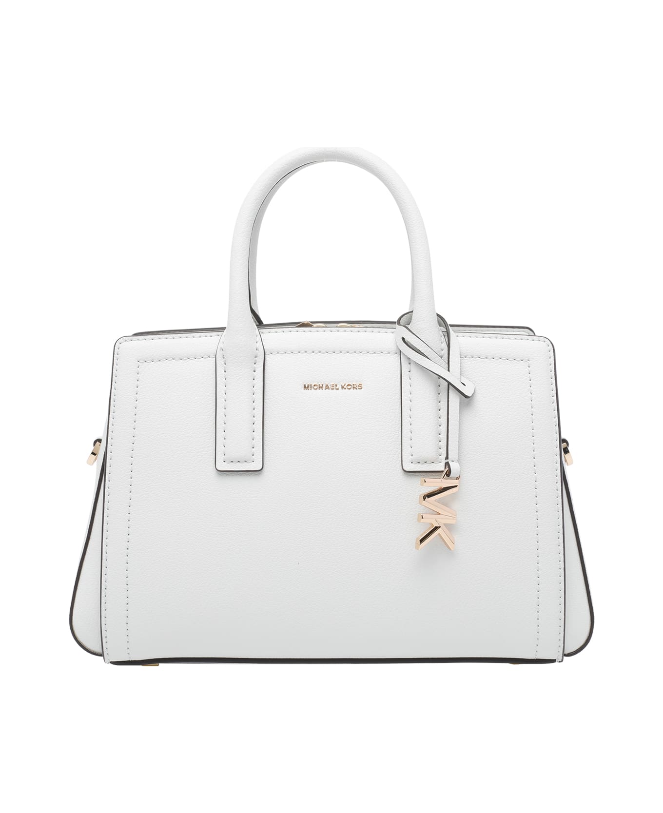 Michael Michael Kors white Laila handbag, 3 sections, zipped pocket, 2 handles, adaptable and removable strap, leather model, logo charm Composition: 100% Calf Leather