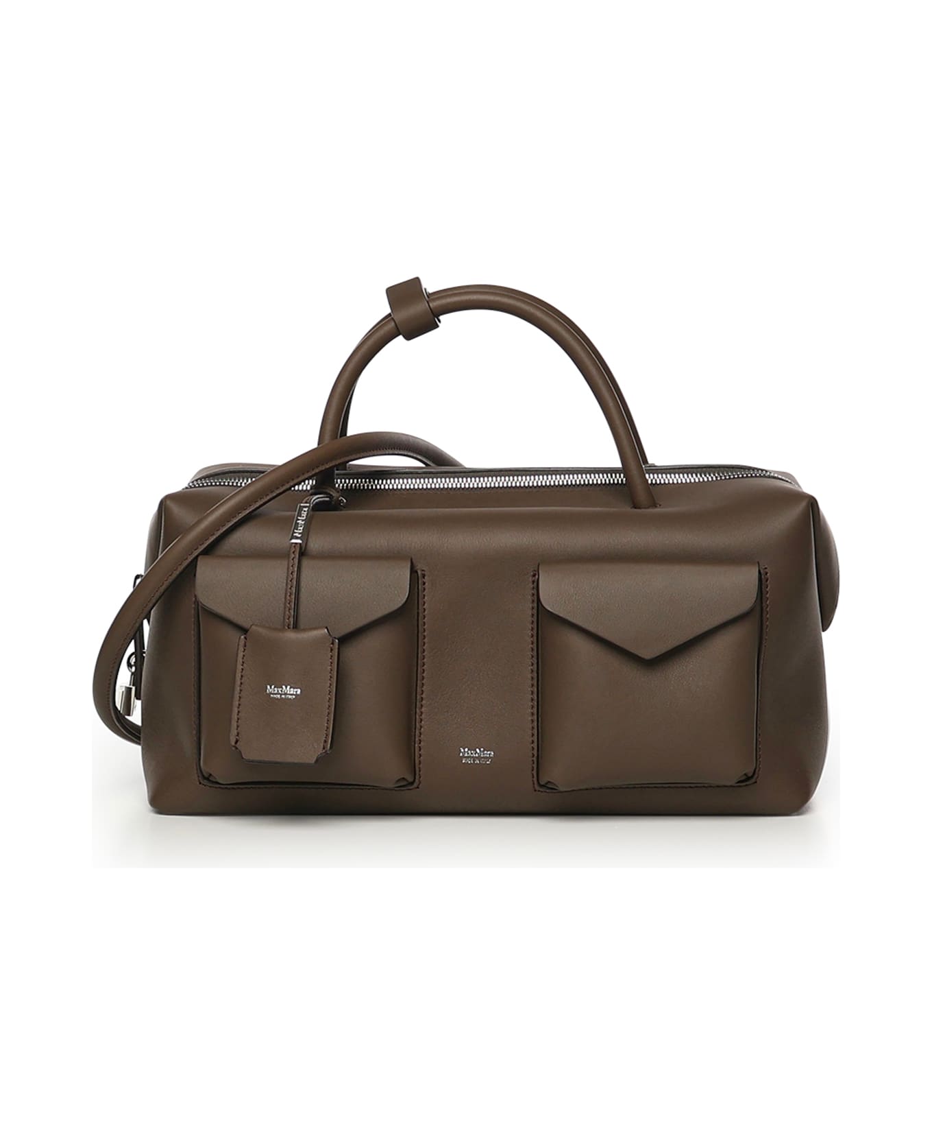 - Made of calfskin - Zip closure - Removable leather shoulder strap - Embossed lettering logo - Made in Italy - Dimensions: 37 x 18 x 17 cm - Designer color: Dark Brown