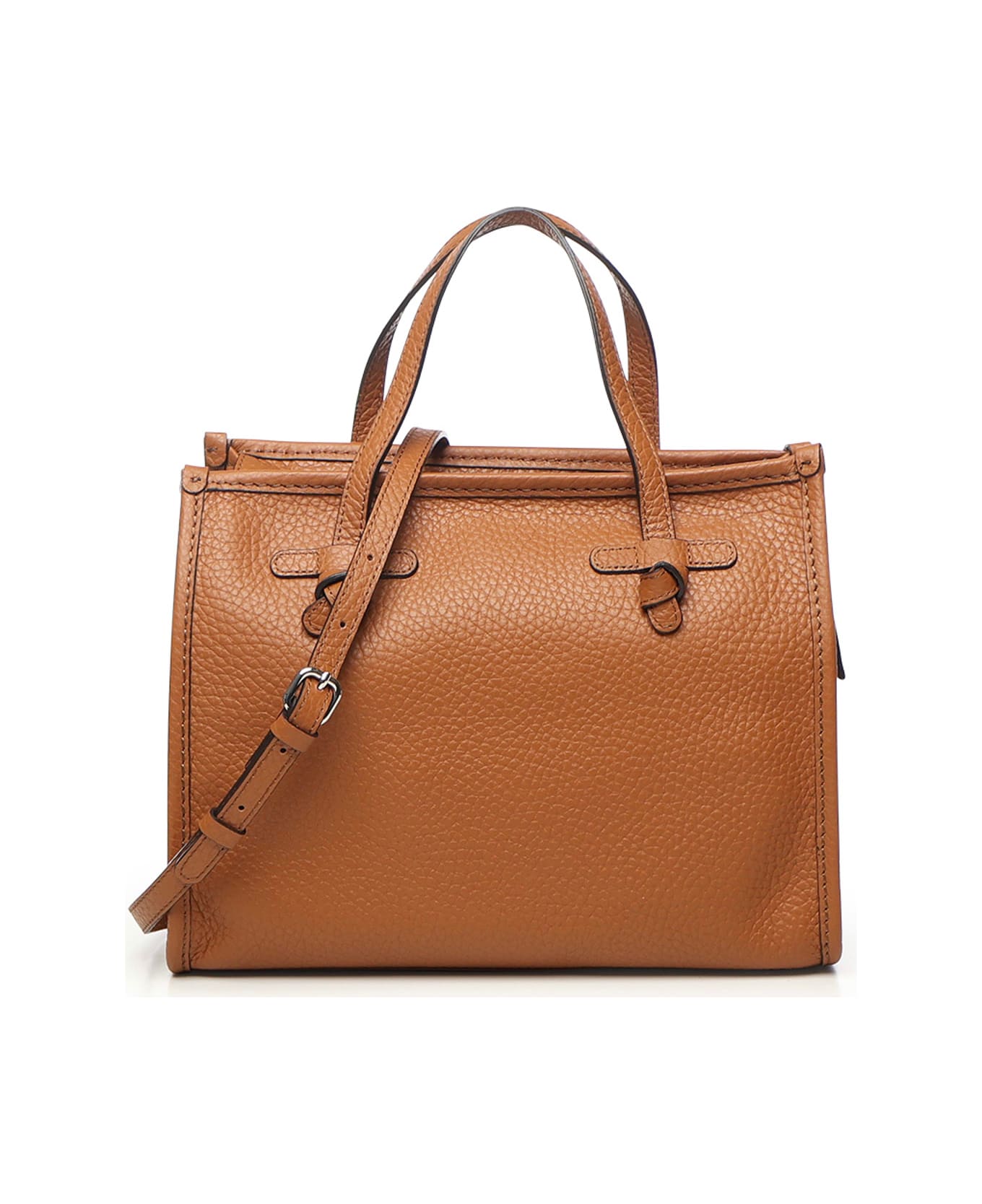 - Made of double bubble leather - Top leather handles - Magnetic closure - Dimensions: 33 x 25 x 13 cm - Made in Italy - Color: Tan