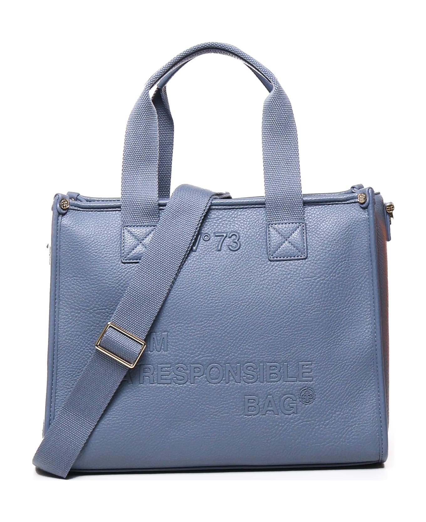 -Ecoleather bag -Handles in mixed fabric and eco-leather for carrying by hand -Adjustable shoulder strap -Dimensions: 34x27x14 cm -Colour: Avio