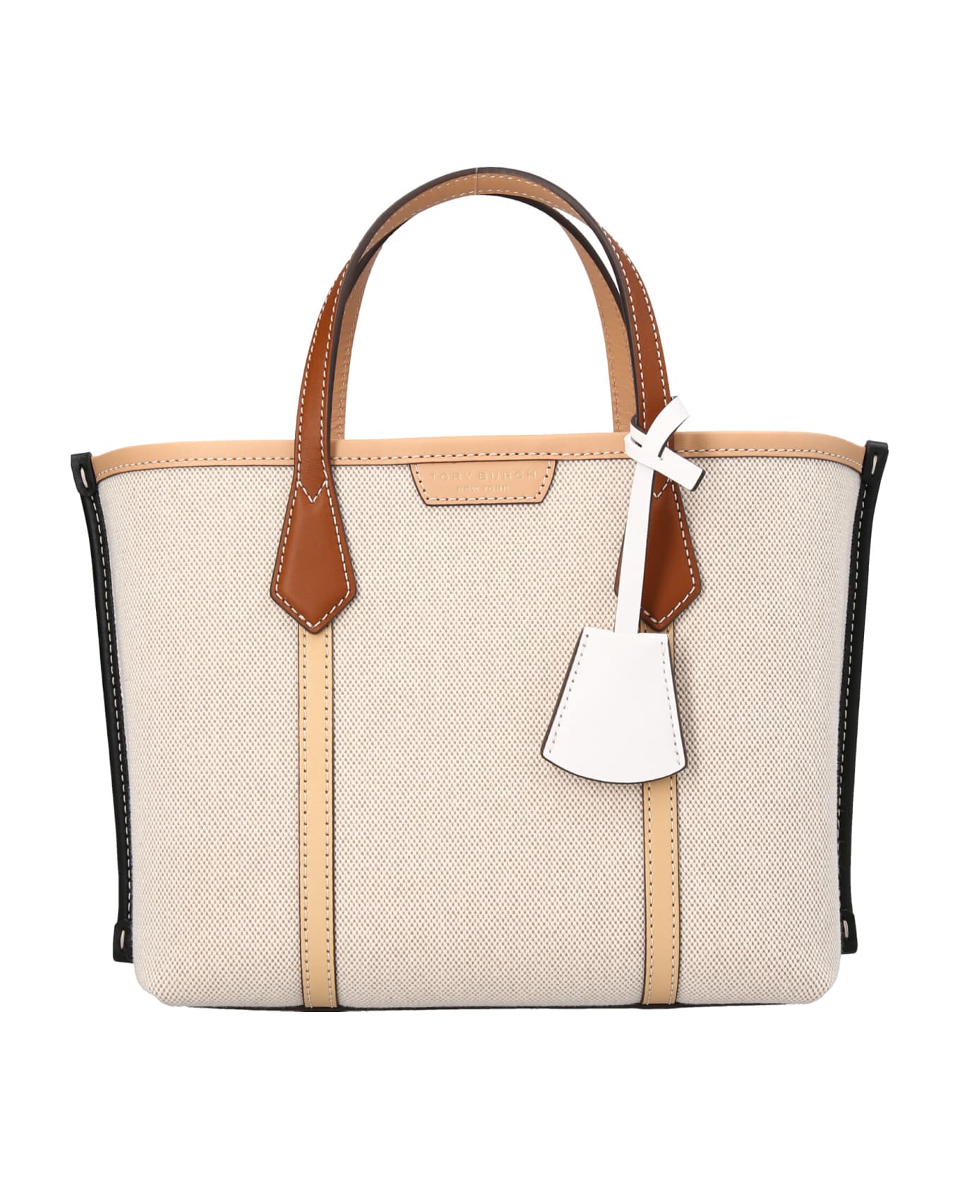 'Small Perry Canvas Triple Compartment' canvas handbag with leather details, top magnetic closure, double handle, adjustable and removable leather shoulder strap.