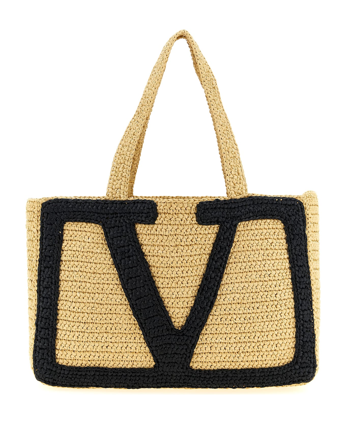 'Viva Superstar' large shopping bag in crochet synthetic raffia with contrast maxi VLogo Signature on the front, double fixed handle. Handcrafted product, any imperfections are to be considered characteristics of uniqueness. Composition: 100% viscose