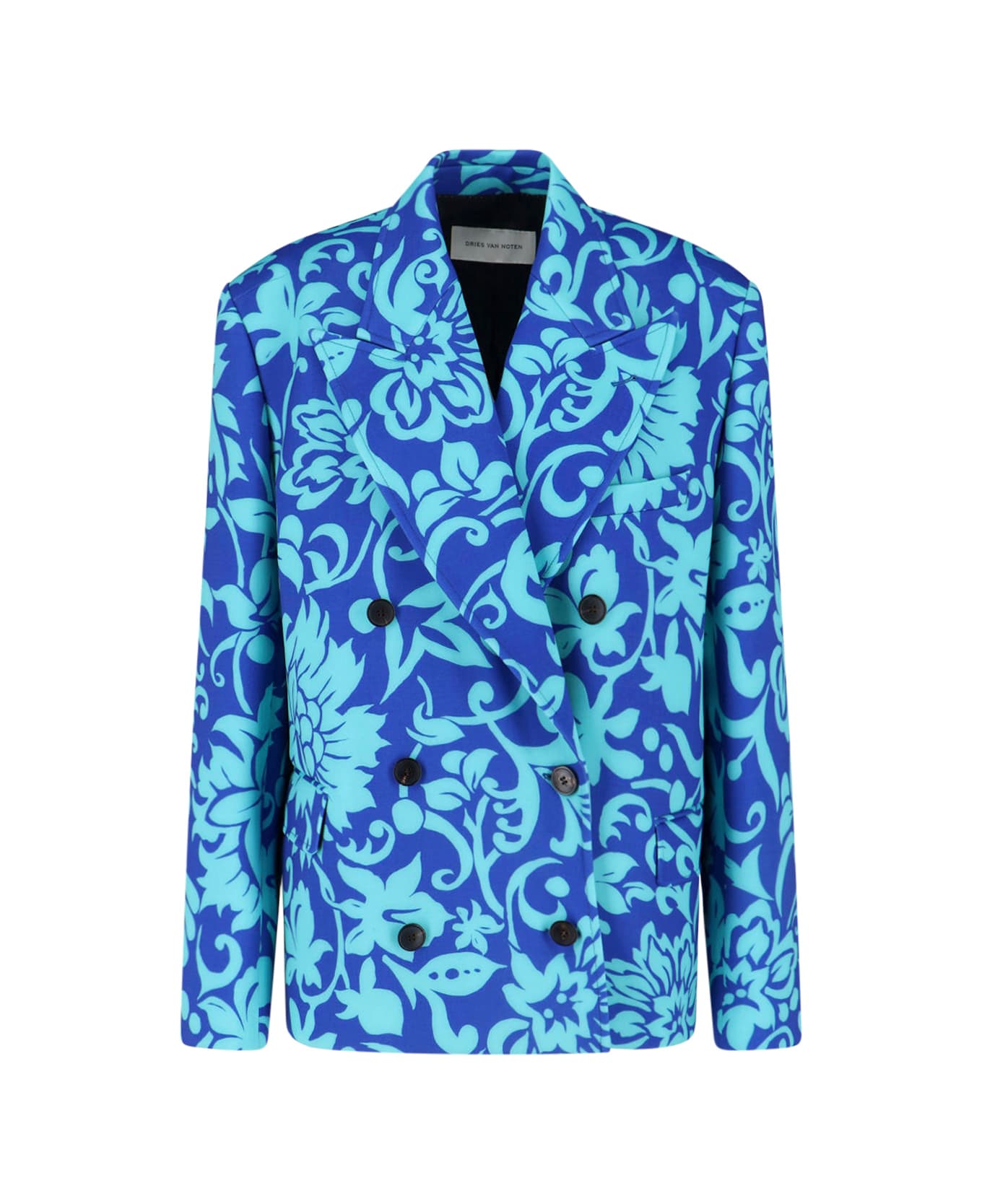 - Double-breasted blazer by Dries Van Noten in blue fabric - Notched lapels - Double-breasted button closure - Long sleeves - Two front flap pockets