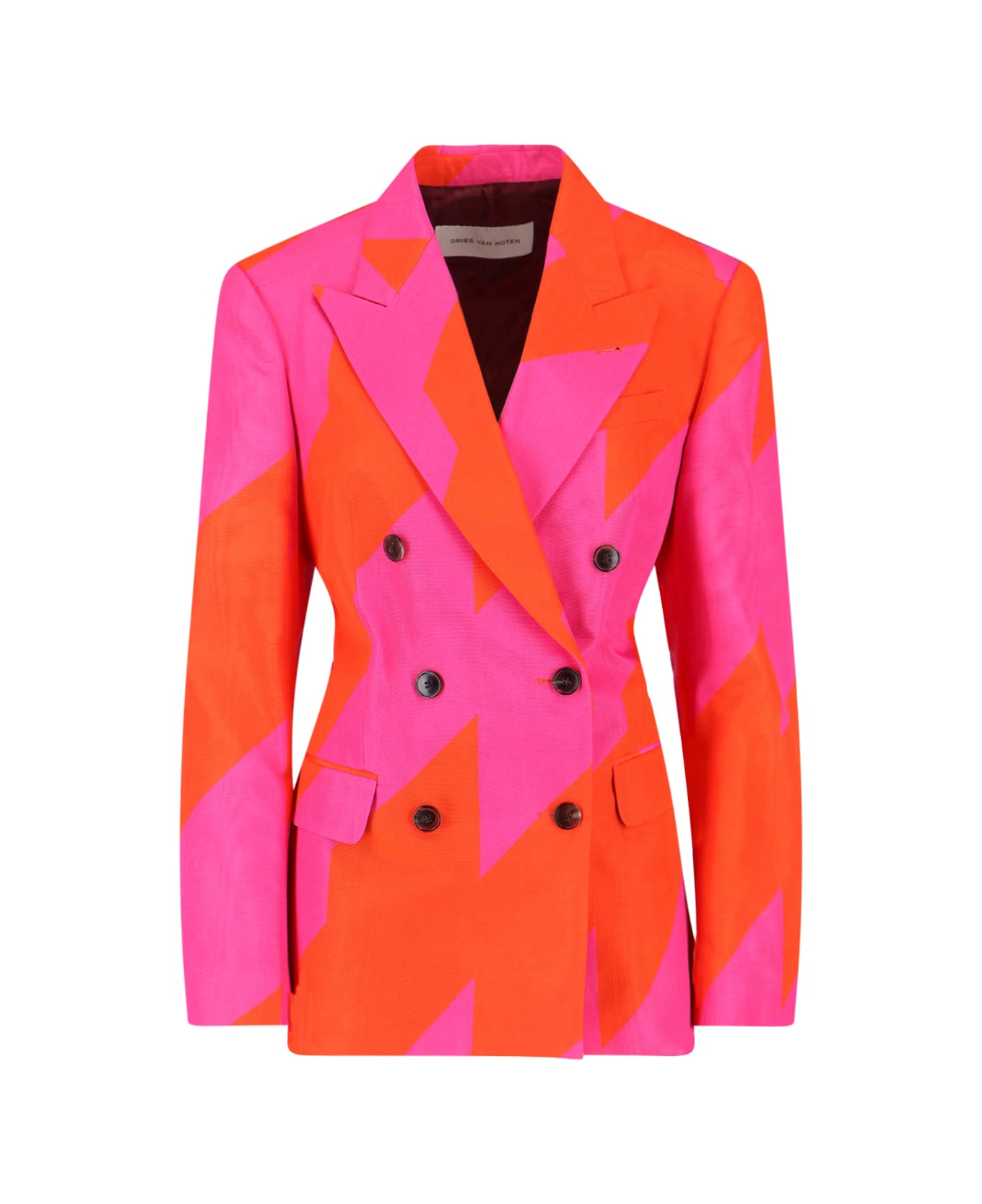 - Double-breasted blazer by Dries Van Noten in a pink cotton and viscose blend - Notched lapels - Double-breasted button closure - Long sleeves - Two front flap pockets - Cuff buttons