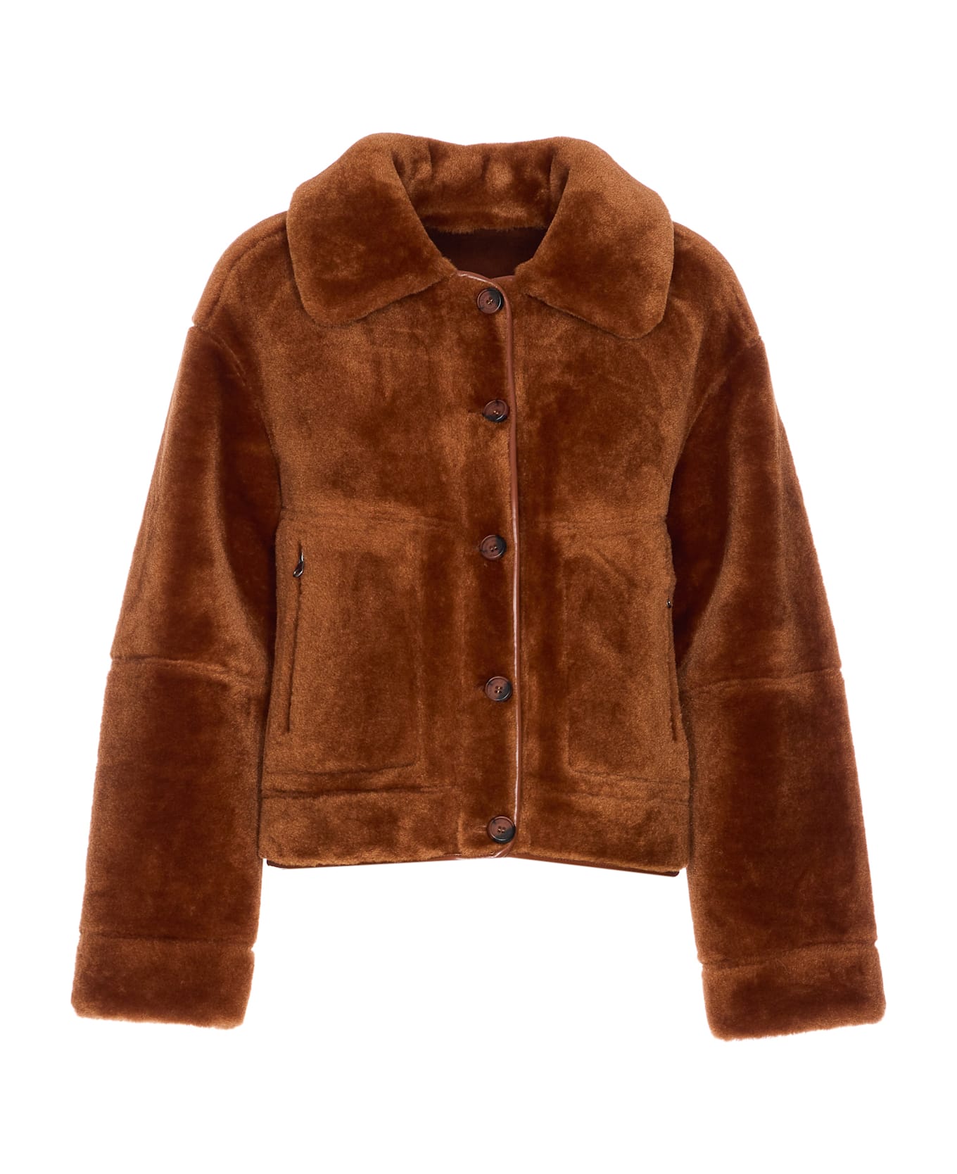Urbancode brown reversible faux fur jacket with buttons closure, long sleeves, collar, lateral zip pockets, one side with pocket with button closure