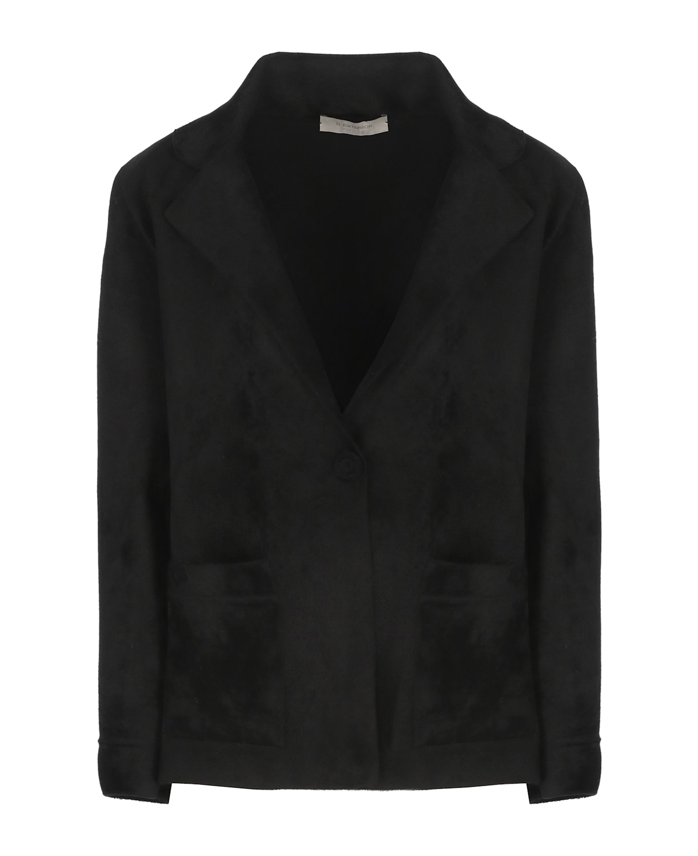 - D. Exterior woman's black velvet blazer - Classic lapel collar - Long sleeves - Two front welt pockets - Front buttons fastening