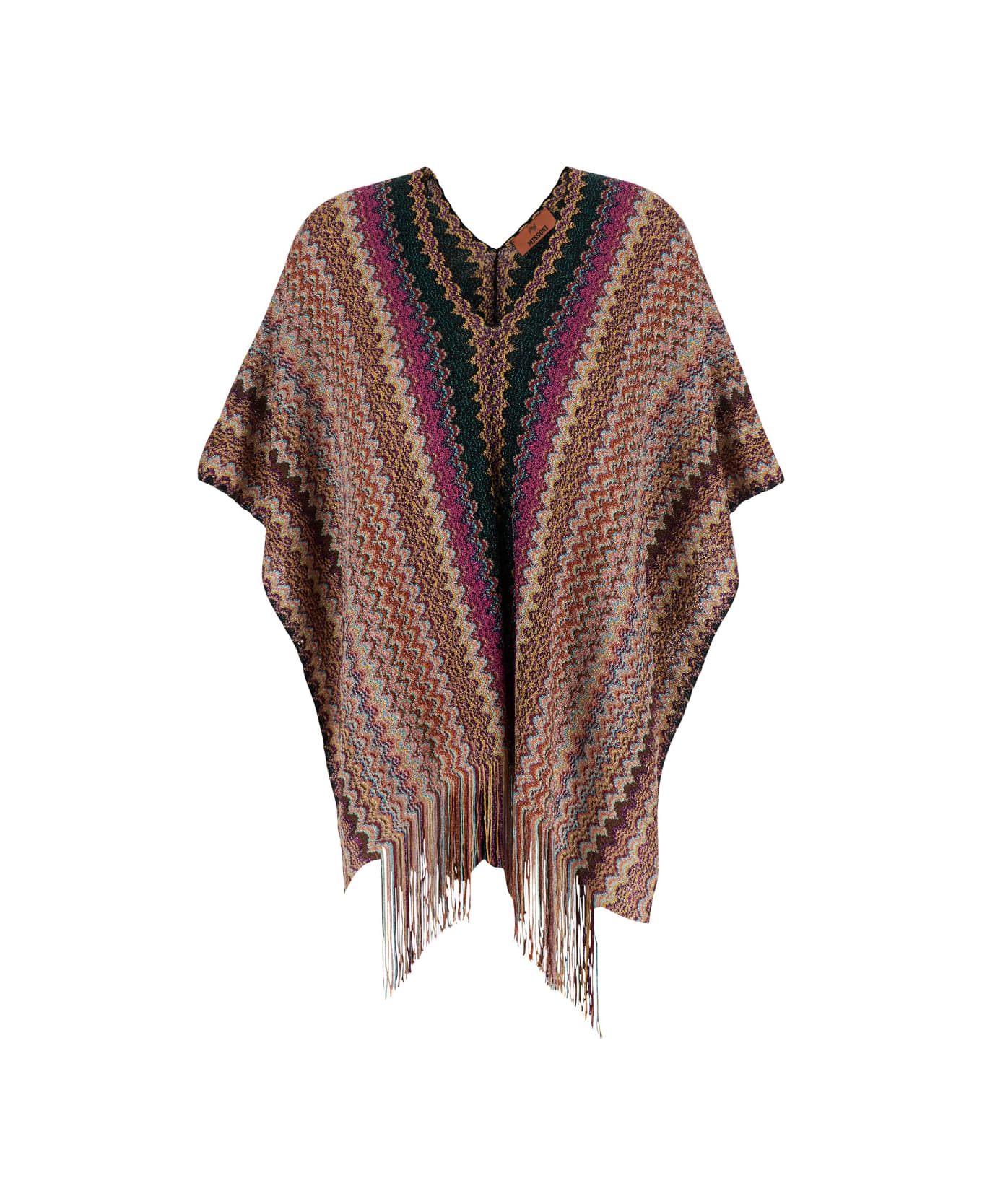Multicolor Cape With V Neck And All-over Zigzag Motif In Viscose Blend Woman