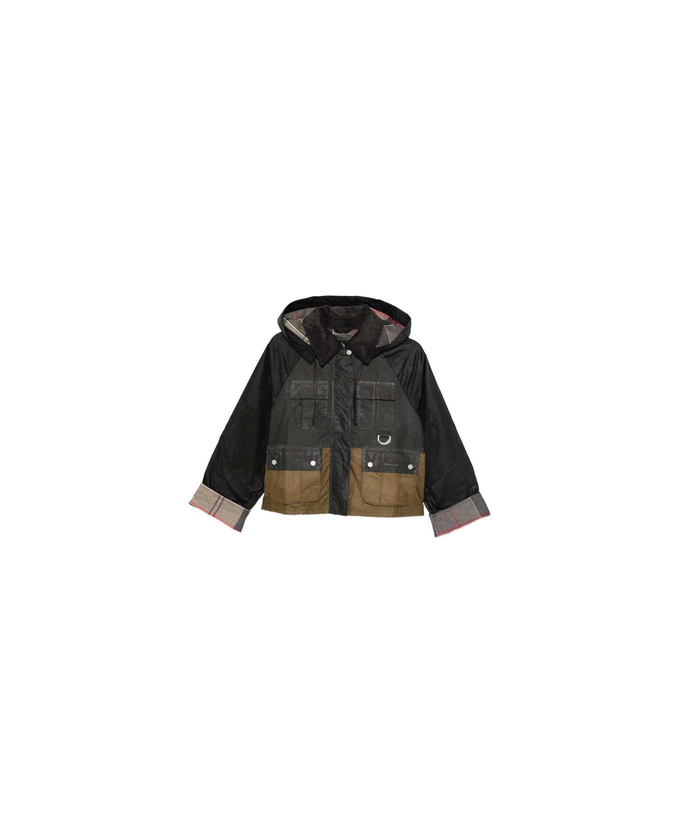 black/brown hooded front pockets button fastening long sleeves