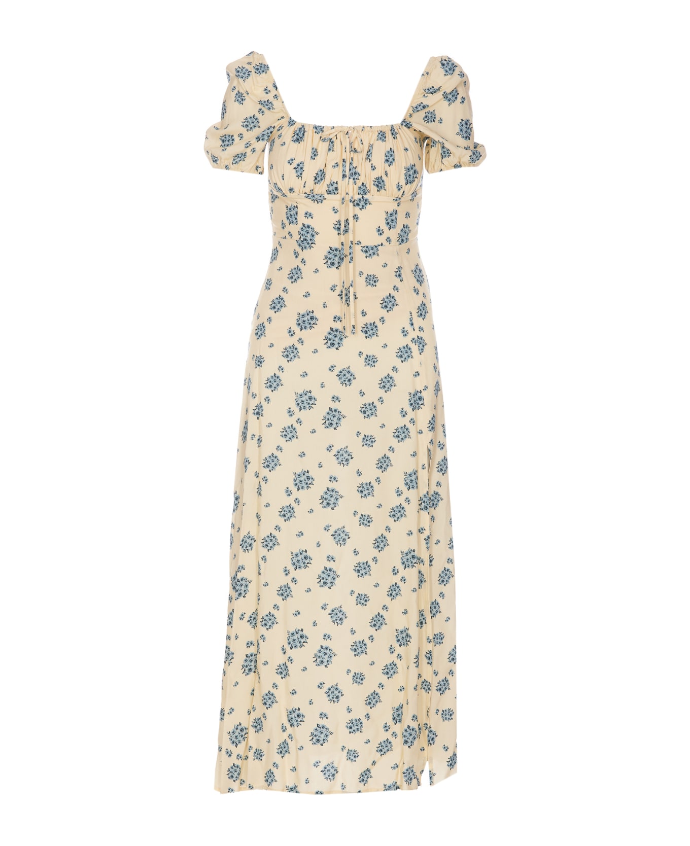 Aniye By iris lampon long dress with zip closure, baloon short sleeves, floral print, lateral split
