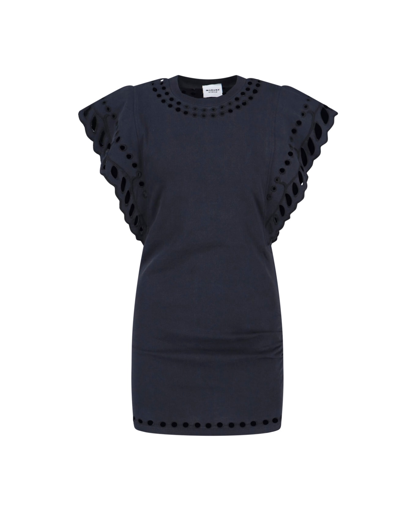 Isabel Marant étoile Orlane mini dress in black cotton with round neckline, cut-out details, back pin tucks, and straight hem.