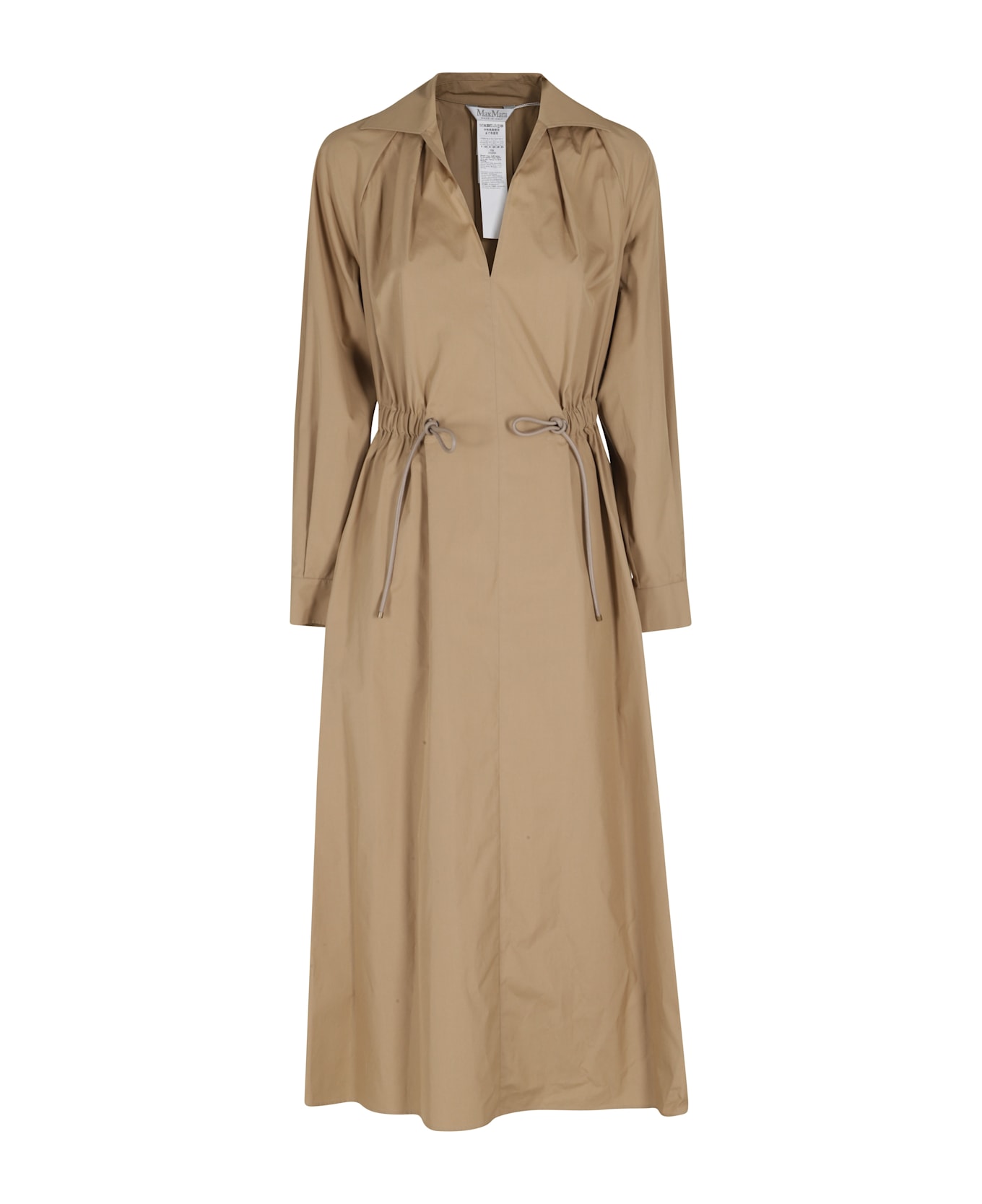 Category: Dress Article: Pedaggi Brand: Max Mara Color: Desert Neckline: A Shirt Details: Drawstring waist SIZE AND FIT Fit: Regular Fit: Flared Length: Midi Sleeves: Long