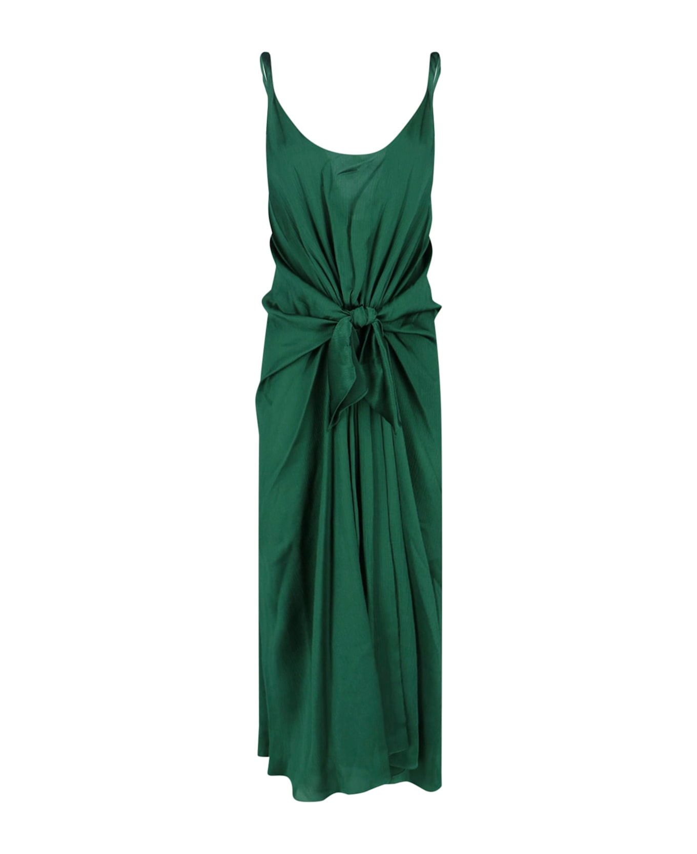 Silk midi dress by J. W. Anderson, in green silk, thin straps, rounded neckline, adjustable maxi knot detail at the front, straight hem. Composition: 100% Silk