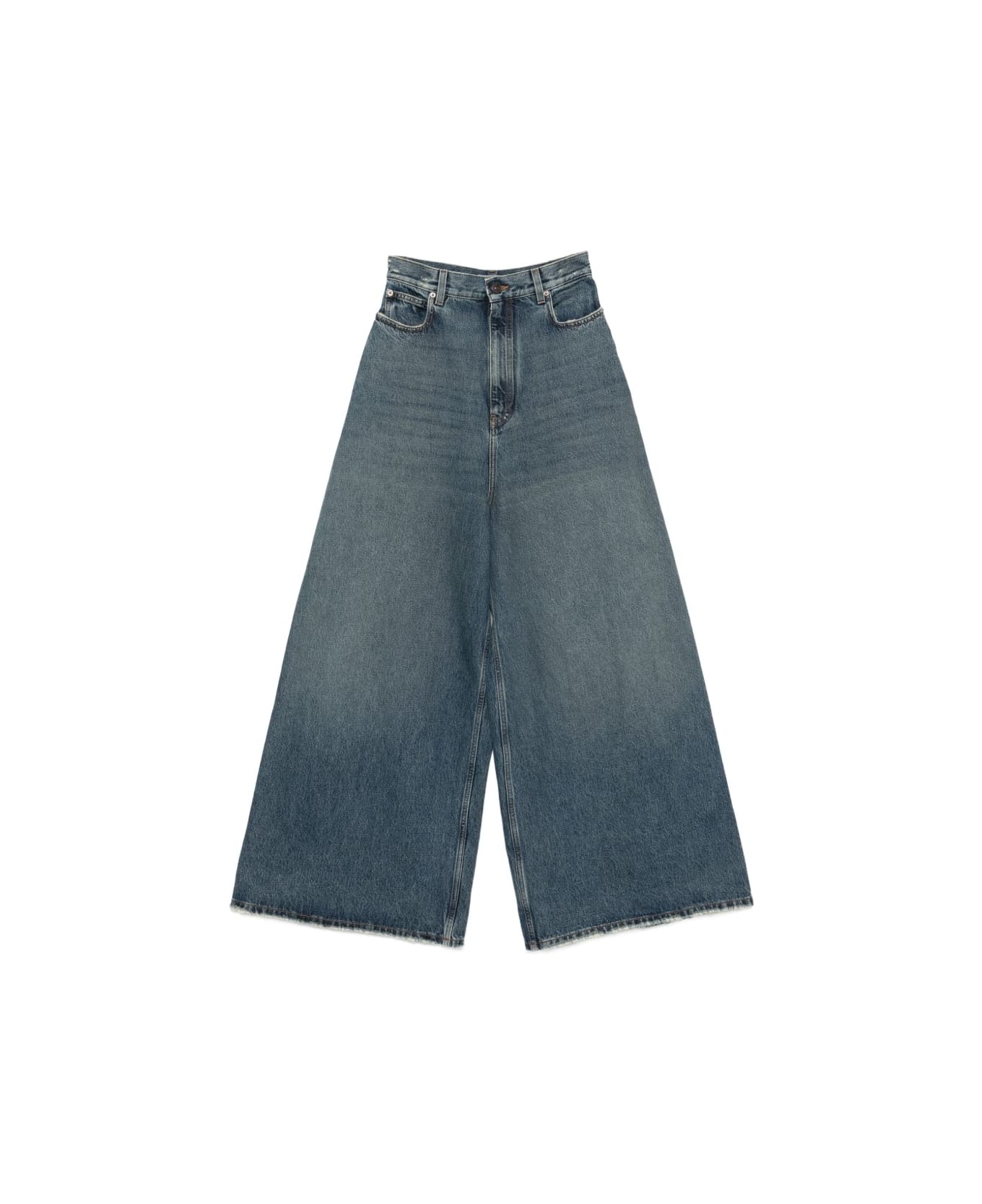 blue wide leg distressed effect five pockets belt loops zip and button closure Composition: Calf Leather, 100%