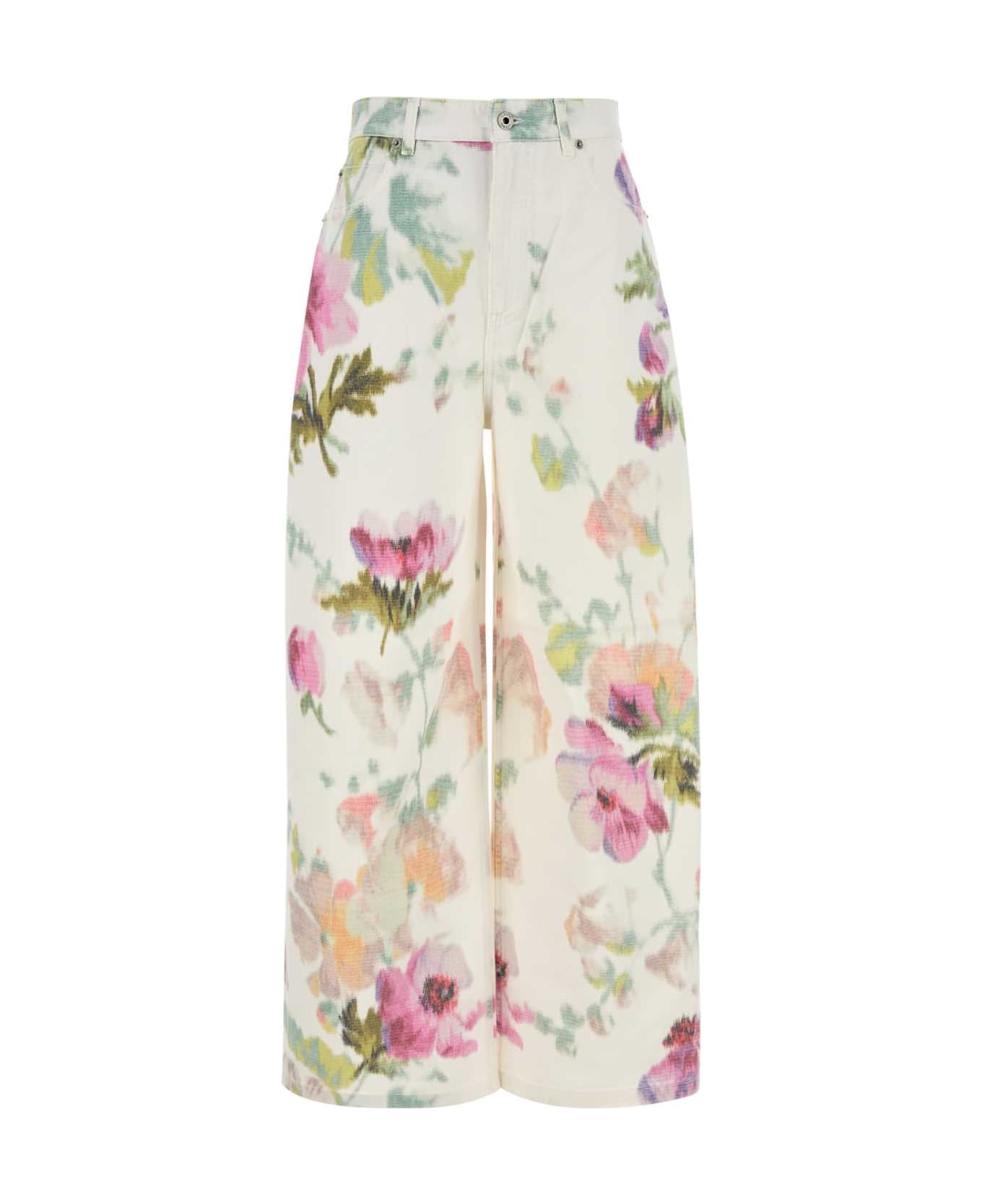 Printed Denim Wide-leg Jeans