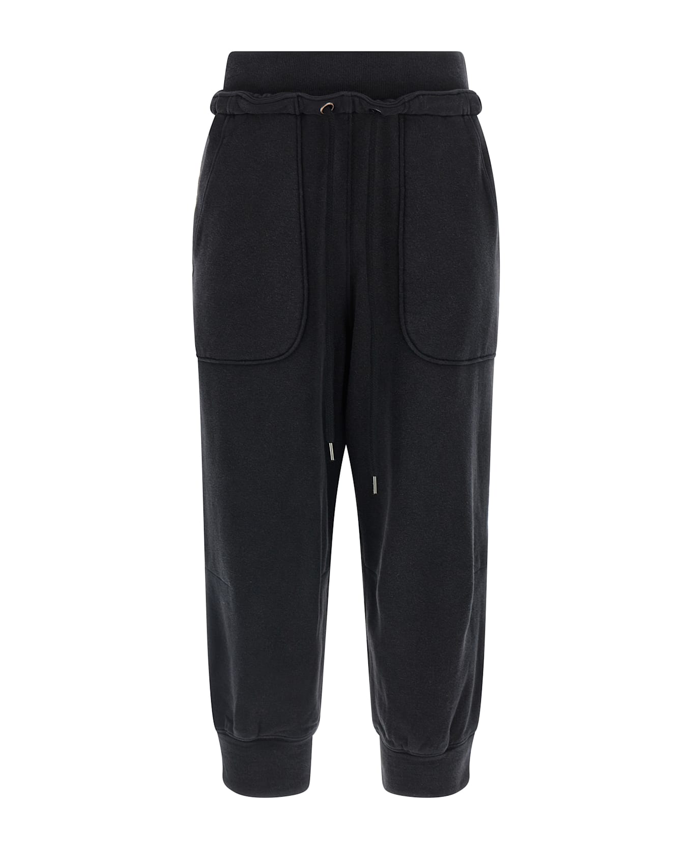 Fleece cotton joggers with used effect, crop model, elastic waistband with drawstring, wide leg, pockets, cuffed leg bottoms. Composition: 100% cotton