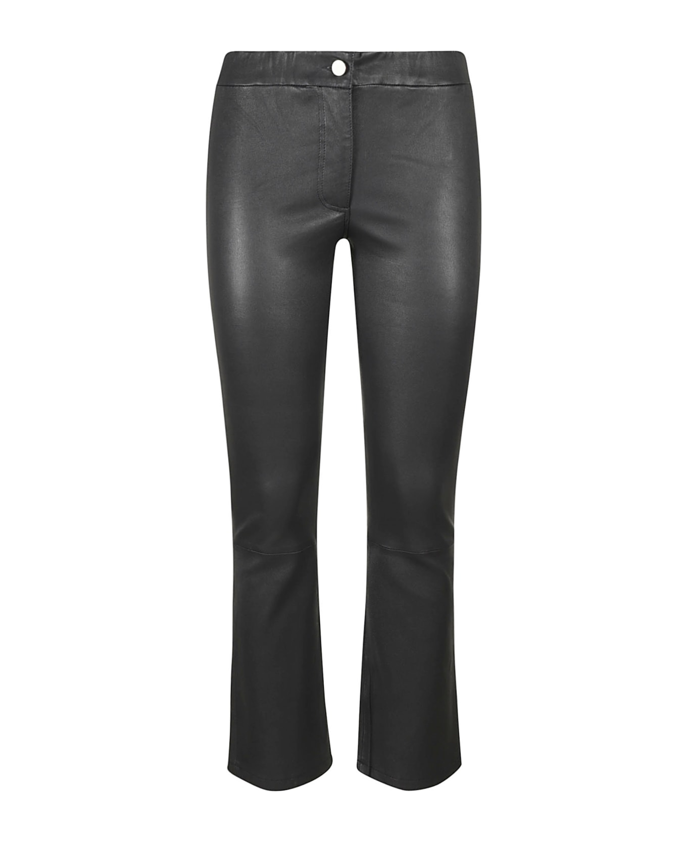 Leather trousers flared on the bottom Average life Slim fit Lined in stretch cotton Colour: black