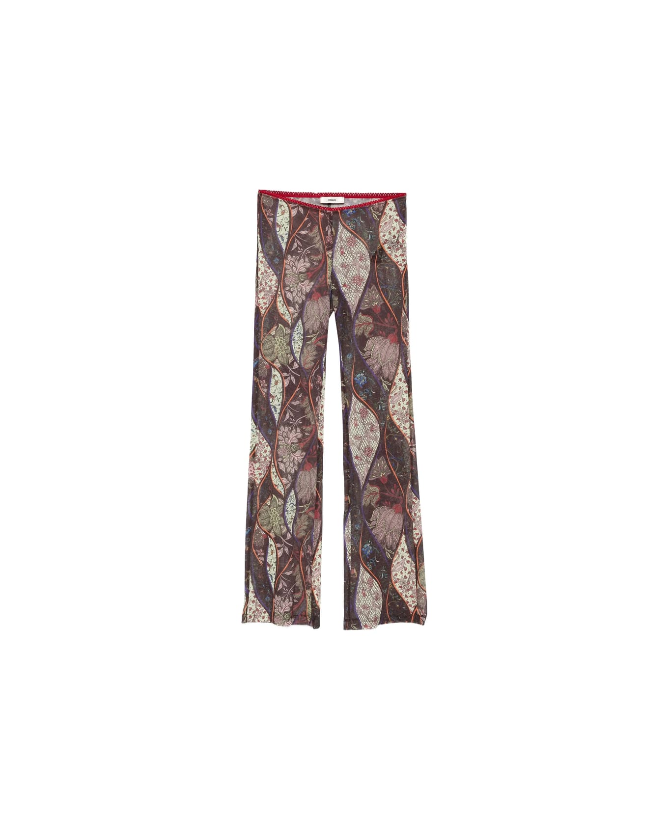 dark brown floral pattern paisley pattern flared leg high waist elasticated waistband