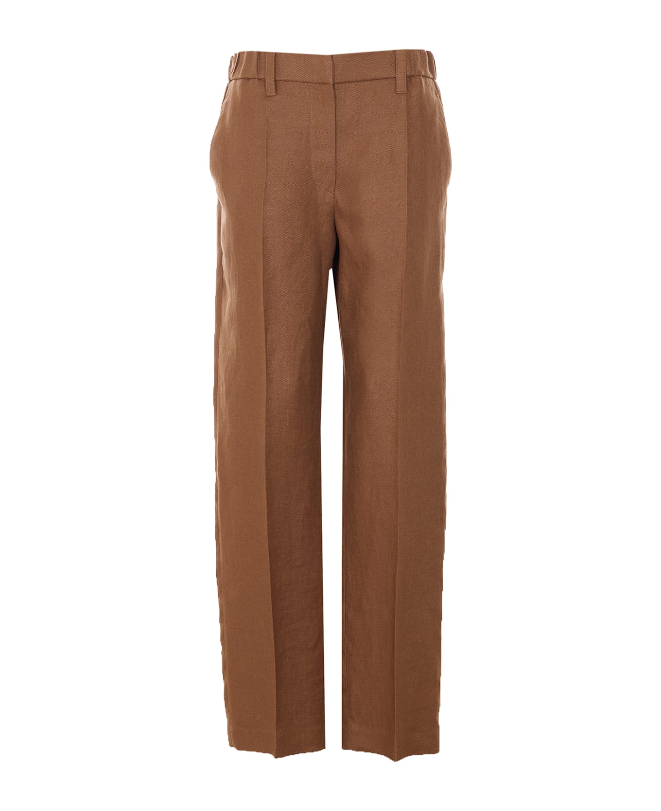 Brunello Cucinelli brown hook and zip closure, lateral pockets,regular fit Composition: 100% Linen, 36% Polyester, 32% Acetate, 32% Cupro