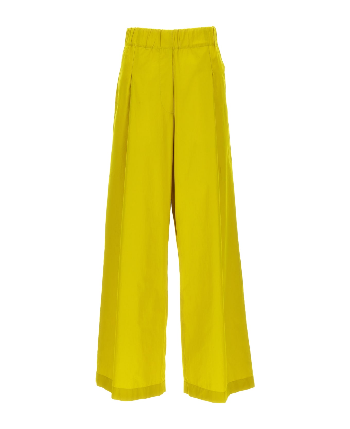 'Pila' cotton denim trousers, drawstring elastic waistband, pockets, wide leg with pin tuck.