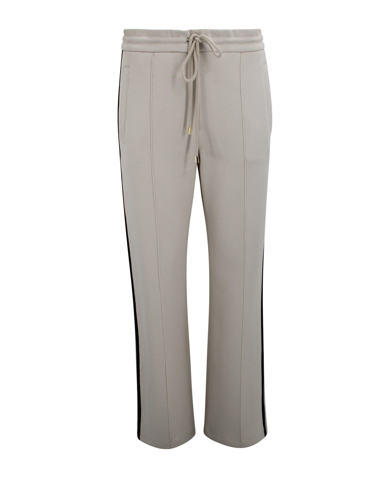 Trousers crafted from cotton jersey with a soft hand and technical finish, ensuring comfort and freedom of movement. The wide-leg design creates a contemporary and relaxed silhouette, ideal for a casual-refined aesthetic. The style features an elastic waistband with jacquard ribbon drawstring, side pockets, and a welt back pocket on the right side, combining functionality with style. Made from a versatile, high-performance fabric, this piece is a modern essential that blends sportiness with timeless elegance.