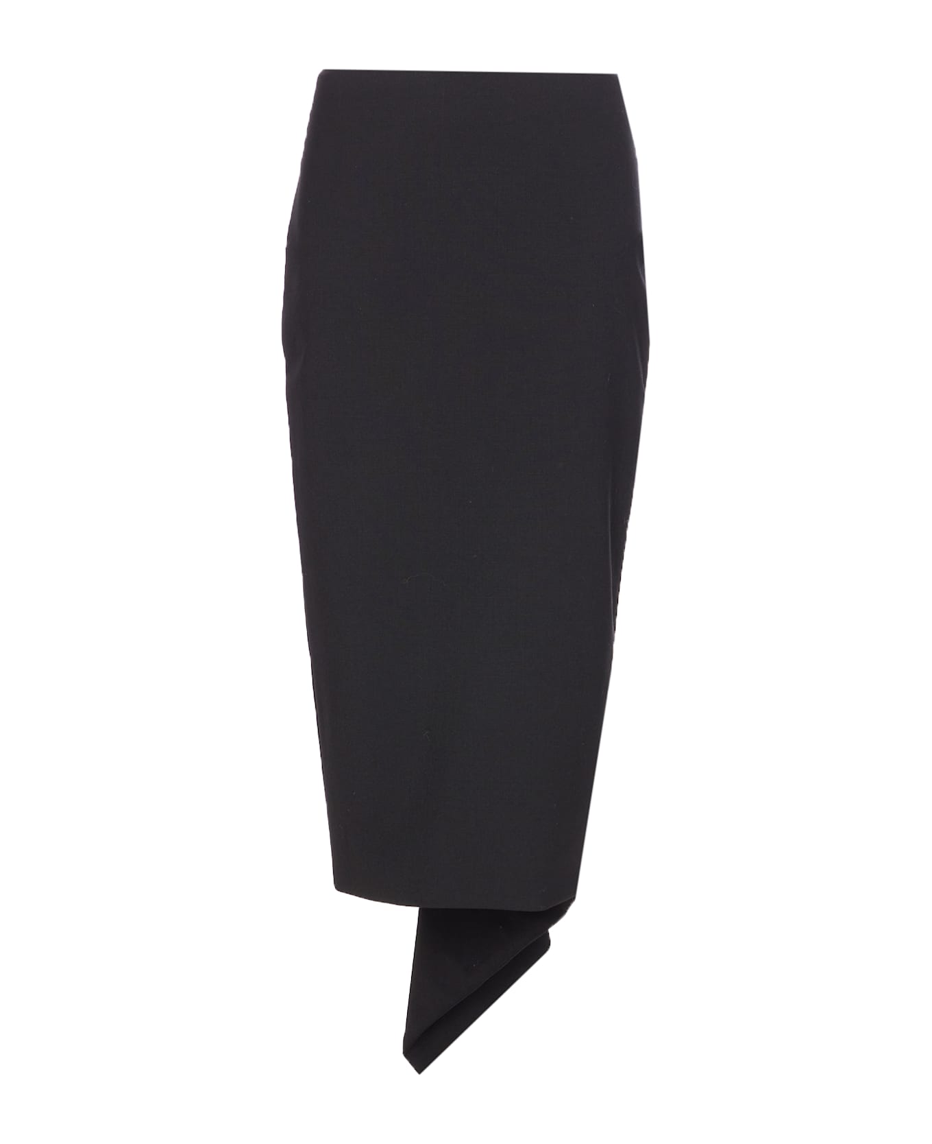 The Latest black C-Bree skirt, lateral zip and hook closure, high waist, asymmetrical at bottom, split on the back Composition: 53% Polyester, 43% Virgin Wool, 4% Elastane