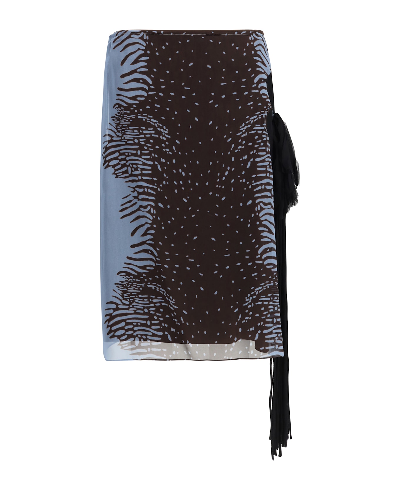 The flower skirt by ferragamo is made of silk-blend georgette, characterized by clean lines and a contrasting animal print placed along the sides. the model features a flower-shaped inlay on the left side, with silk petals and long tubular pistils that create a free-moving fringe. the side closure with an invisible zip maintains a clean design and a regular fit. an elegant skirt, suitable for formal outfits, events, and special occasions.