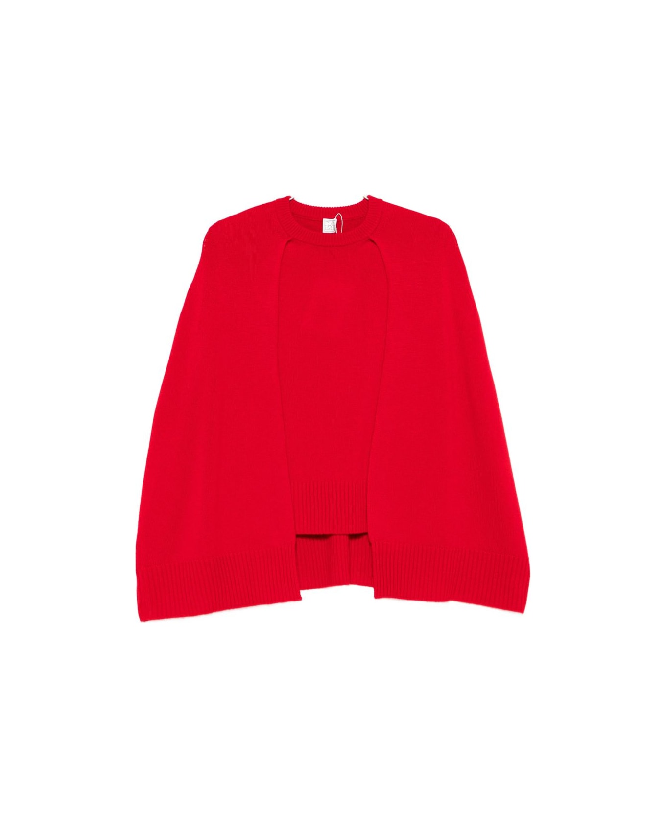 red cut-out detail round neck ribbed trims long sleeves straight hem cape