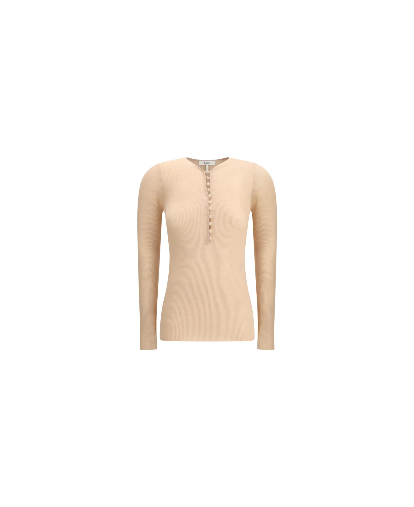 The merino wool henley sweater by chloé brings everyday elegance to life with refined details. rib-knit construction frames the v-neckline with fabric-covered buttons, complemented by long sleeves and a straight hem that enhance the clean silhouette. a versatile and comfortable piece, perfect for both sophisticated and relaxed looks. Composition: 100% % Merino Wool