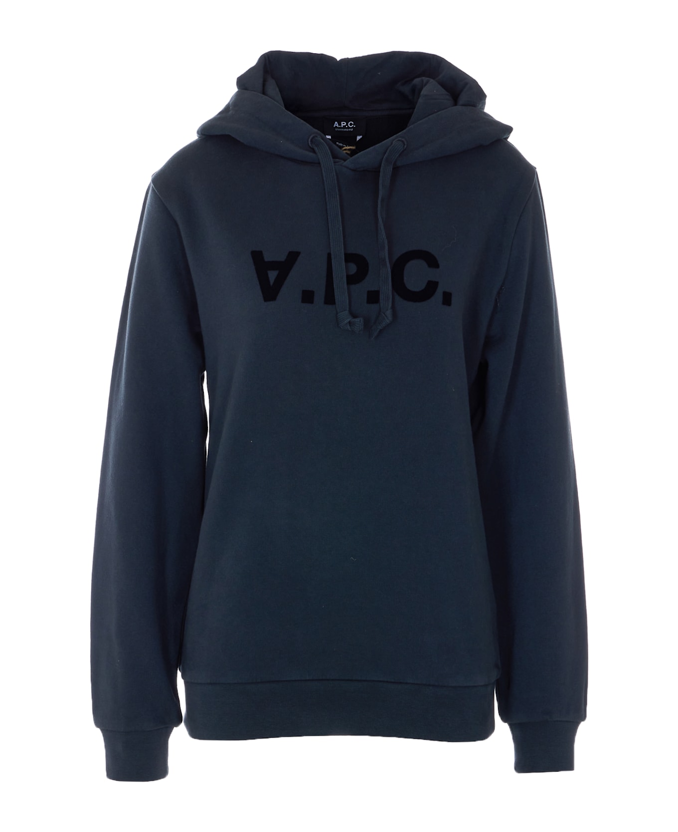 A. P. C. black hoodie with frontal velvet logo on the front, hood with coulisse, long sleeves