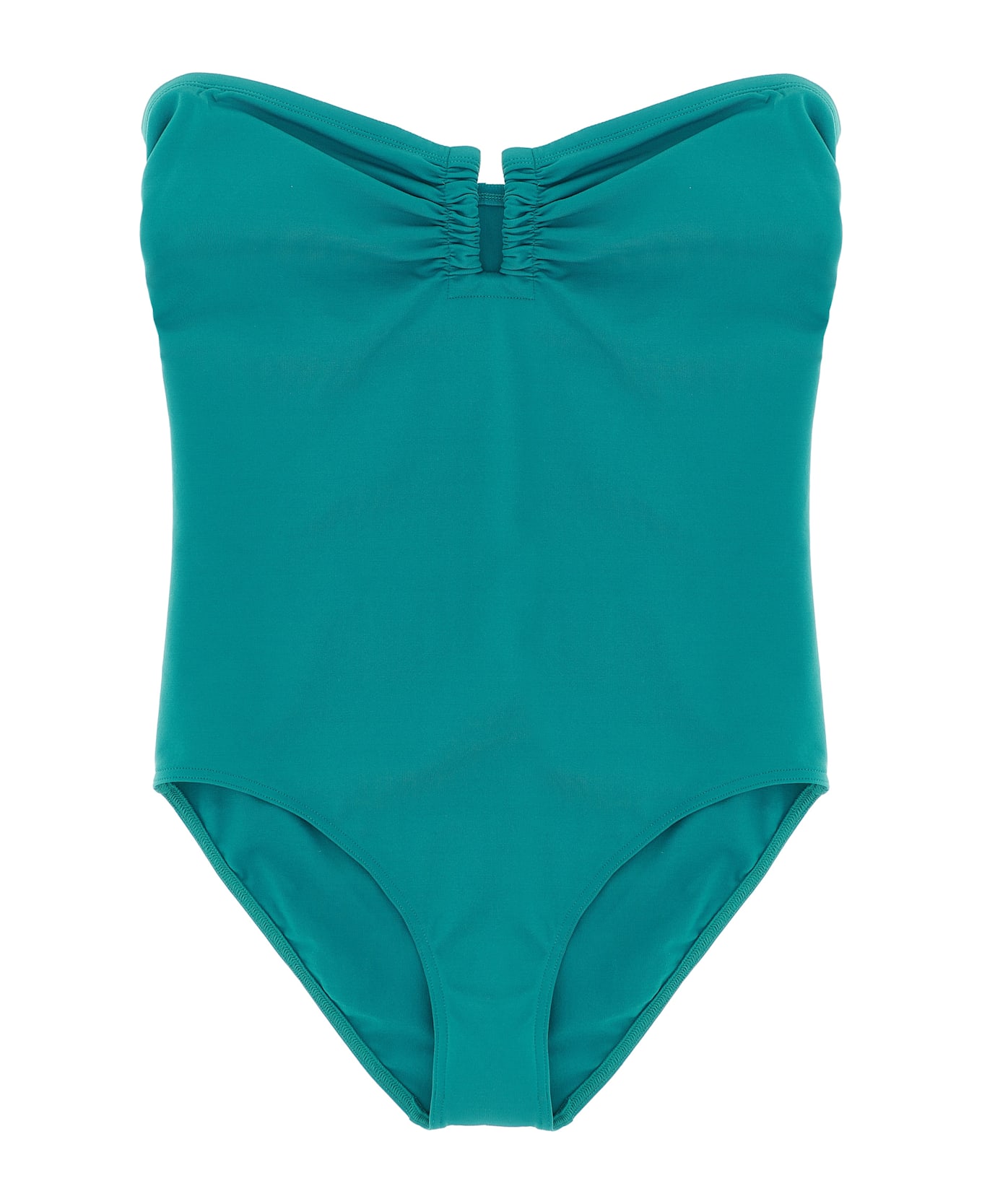 'Cassiopée' one-piece swimsuit in Peau Douce* fabric, off-the-shoulder style with cups separated by a U-shaped underwire.