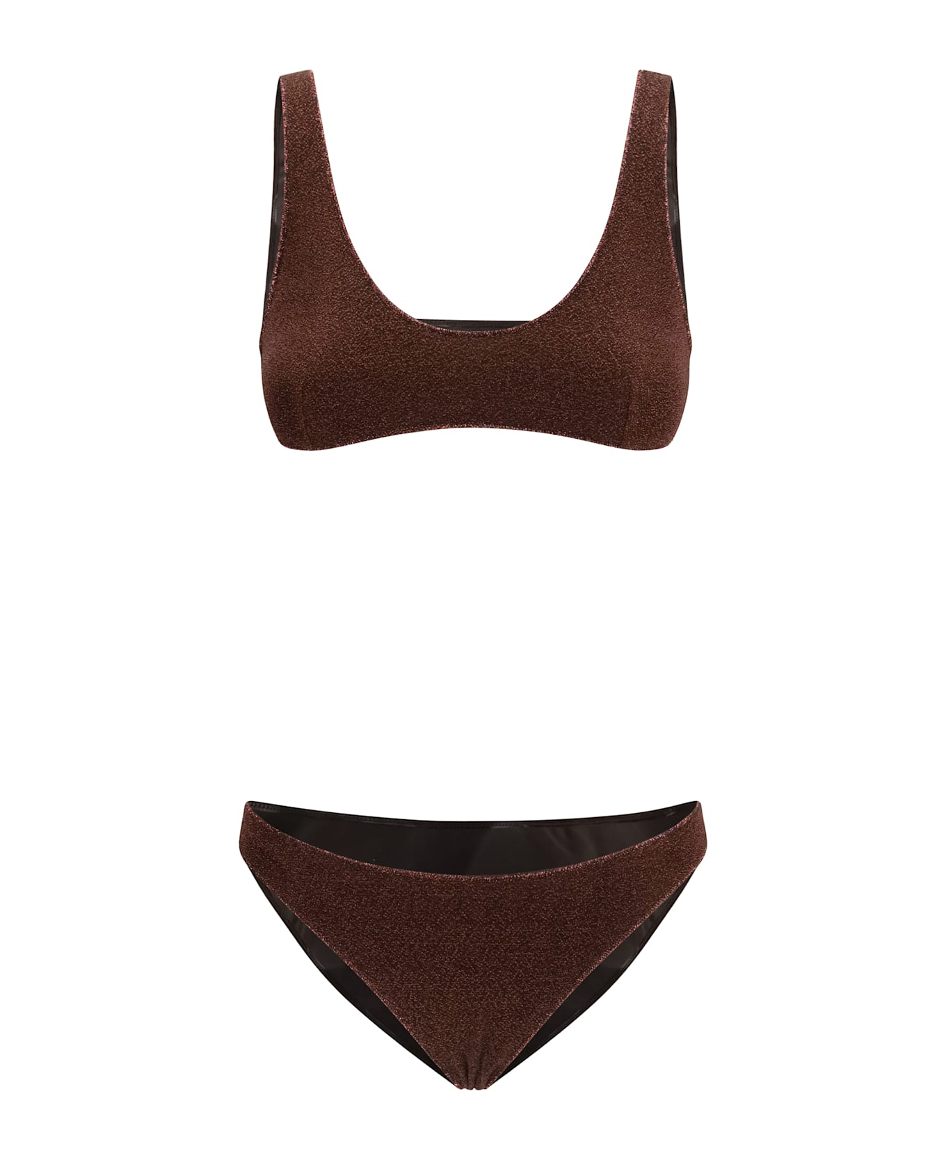 The lumiere sporty swimsuit by oséree is a perfect choice for those seeking a balance between sporty style and a touch of glamour. the bandeau top offers secure support thanks to the removable shoulder straps, combining functionality and comfort. the sporty design is emphasized by the simple and chic structure, while the all-over glitter pattern adds a subtle and sophisticated shine, catching the light in an elegant way. this swimsuit is ideal for those who want a dynamic and modern look, without sacrificing a touch of luxury, perfect for the pool or the beach, but also for those looking for a holiday outfit that does not go unnoticed.