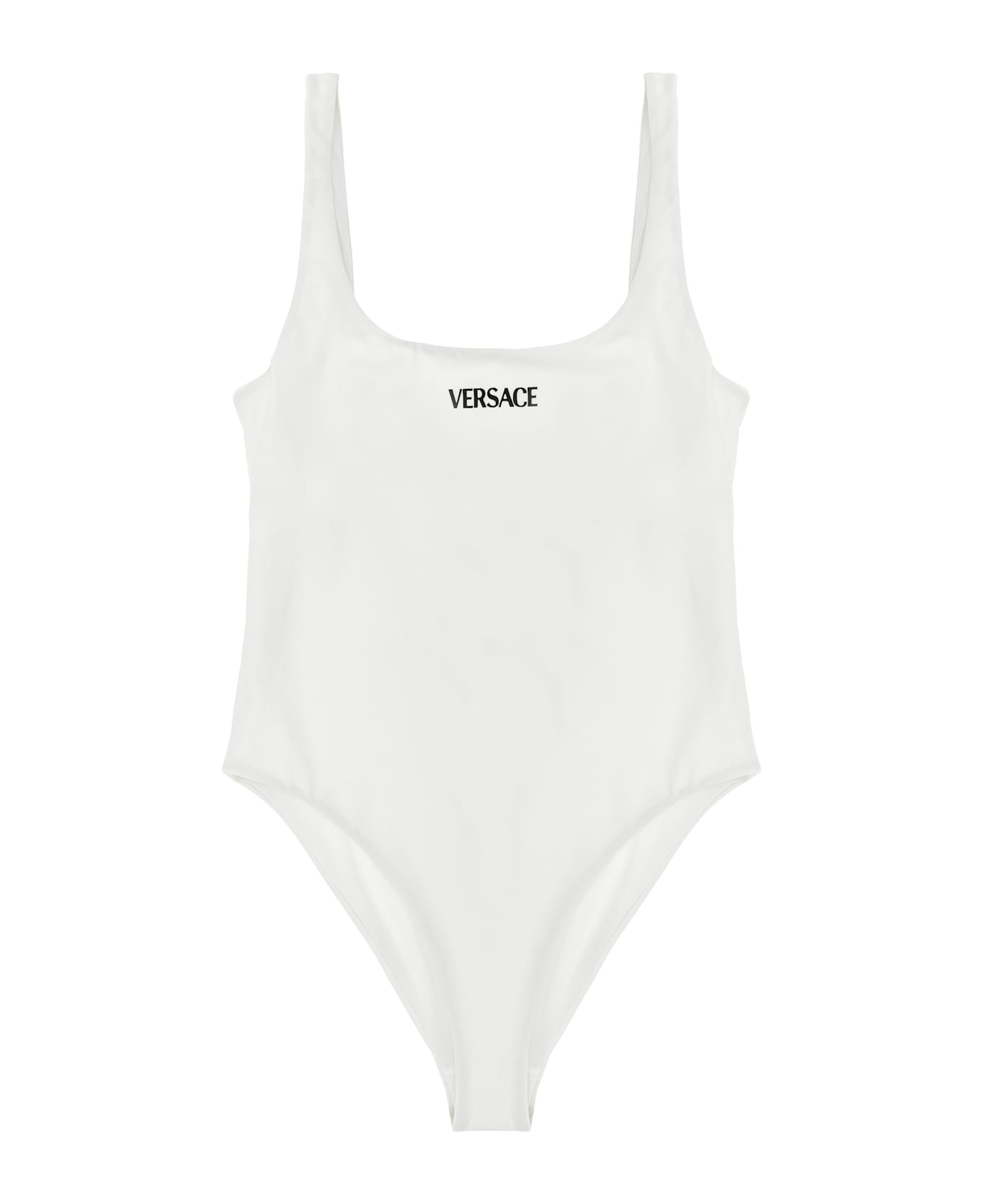 Lycra one-piece swimsuit, rubber 'Versace Logo' at the front, round neckline at the front, wide round neckline at the back. SUSTAINABLE: Product made with recycled materials. Composition: 78% nylon, 22% elastane