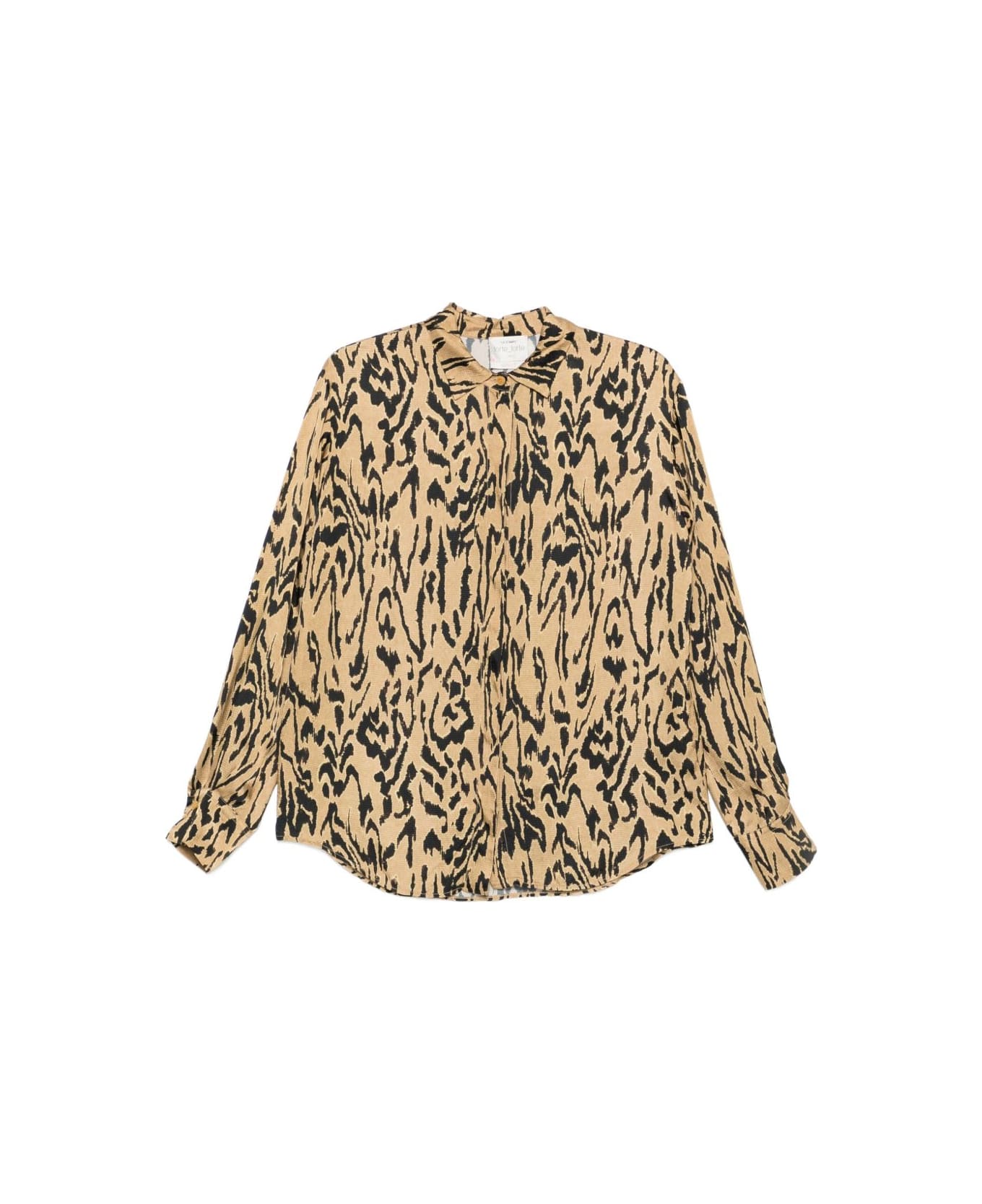 beige animal print button fastening long sleeves buttoned cuffs classic collar