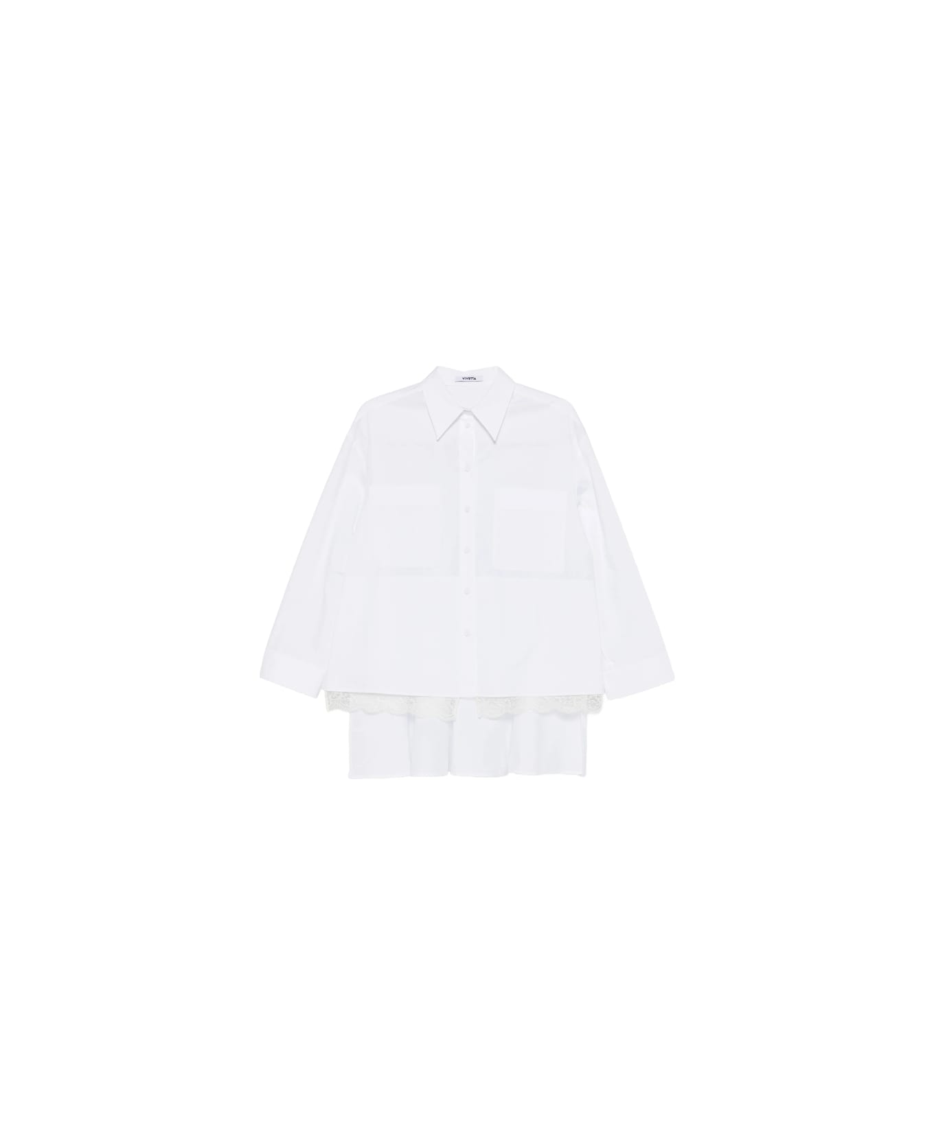 white two front patch pockets lace trim button fastening drop waist long sleeves