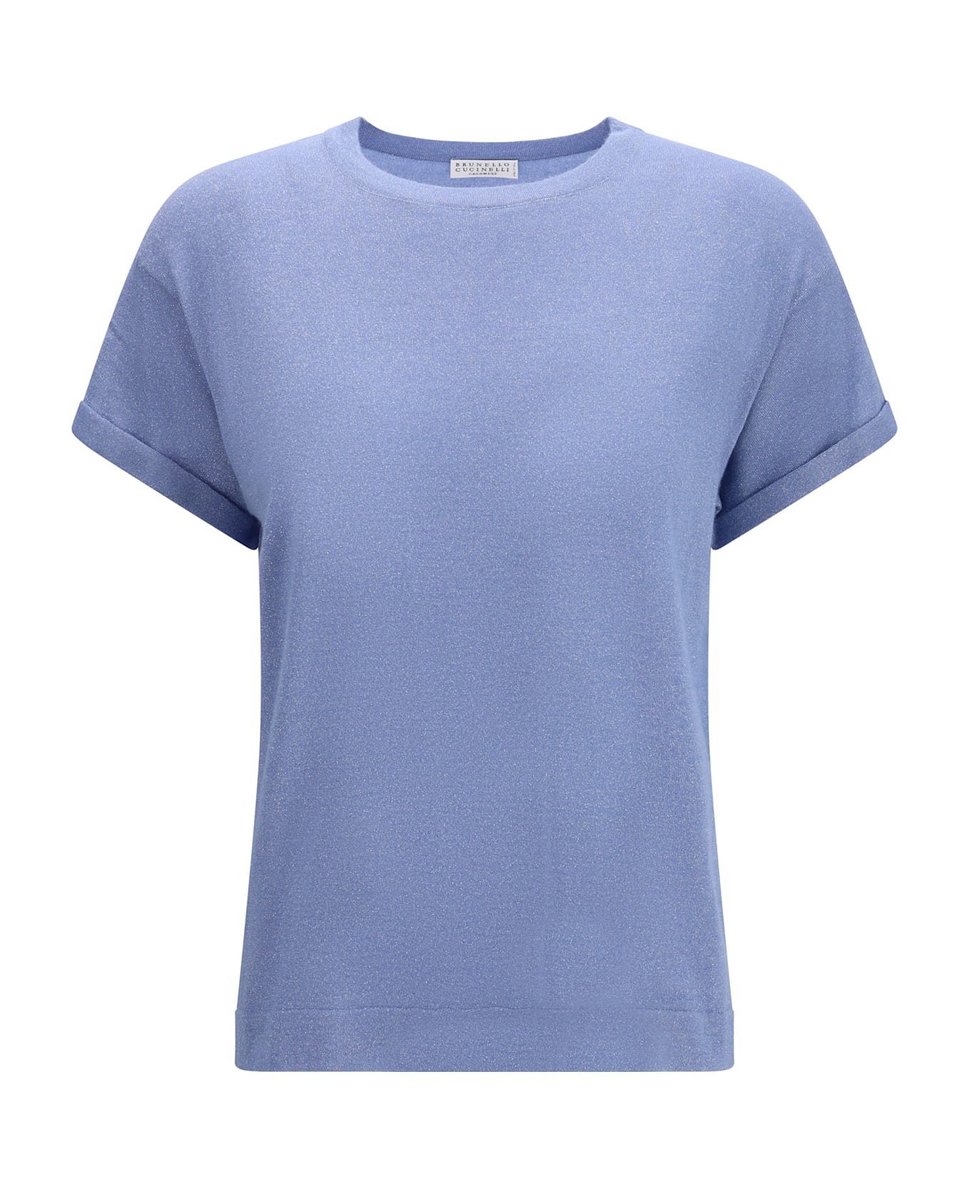 The cashmere t-shirt by brunello cucinelli is an elegant and versatile piece, perfect for adding a touch of luxury to your casual wardrobe. featuring a ribbed crew neck, it has a monochrome design with a delicate glitter effect that enhances its luminosity. a must-have that combines the quality of cashmere with the sophistication of detail