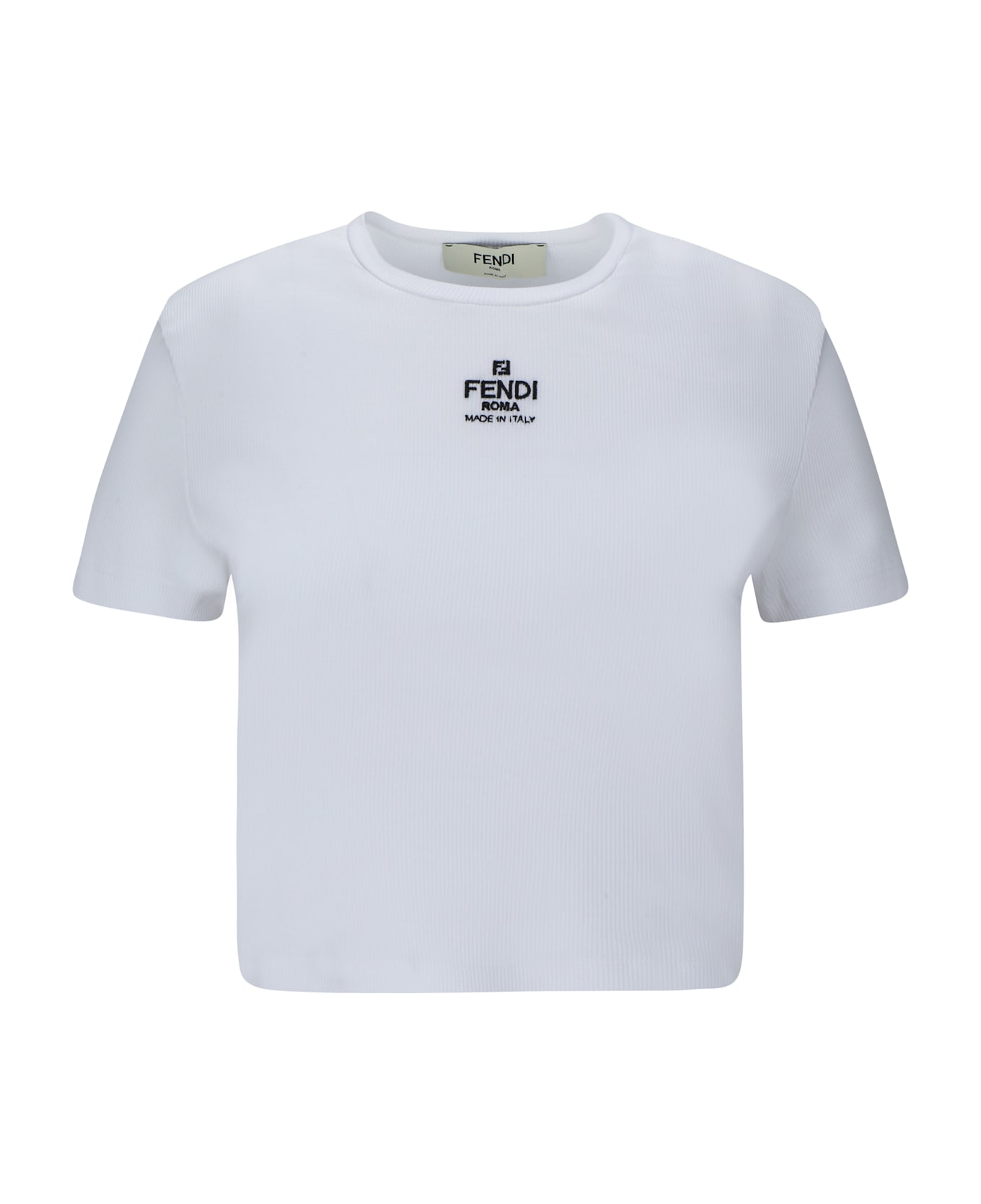 Cotton t-shirt by fendi, all-over ribbed design, contrasting embroidered iconic brand monogram on front, monochrome design, slim fit. Composition: 94% % Cotton, 6% % Elastane