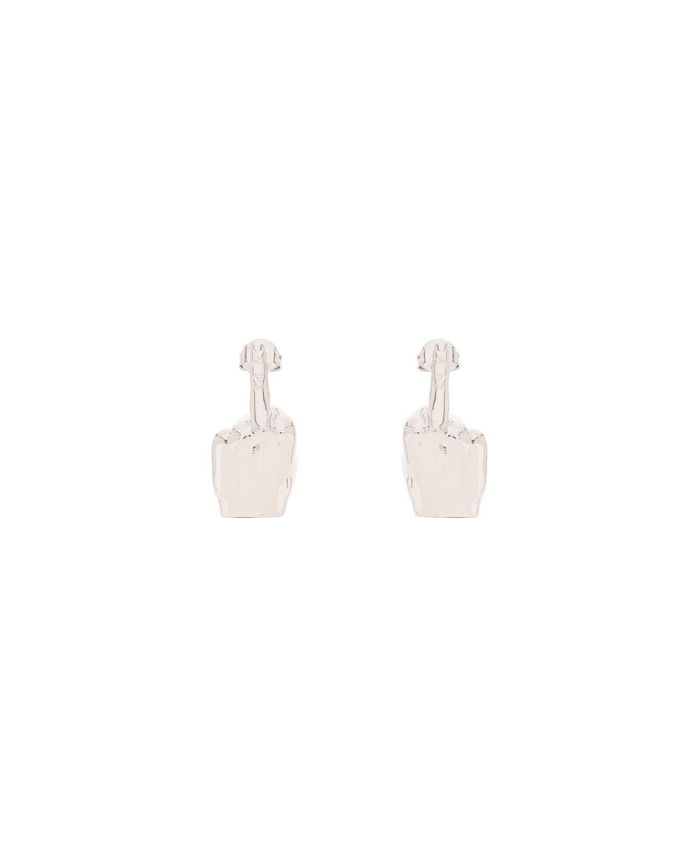 Rock On mini earrings by Y Project, made of silver-plated brass in the shape of a hand. Butterfly closure for pierced lobes.