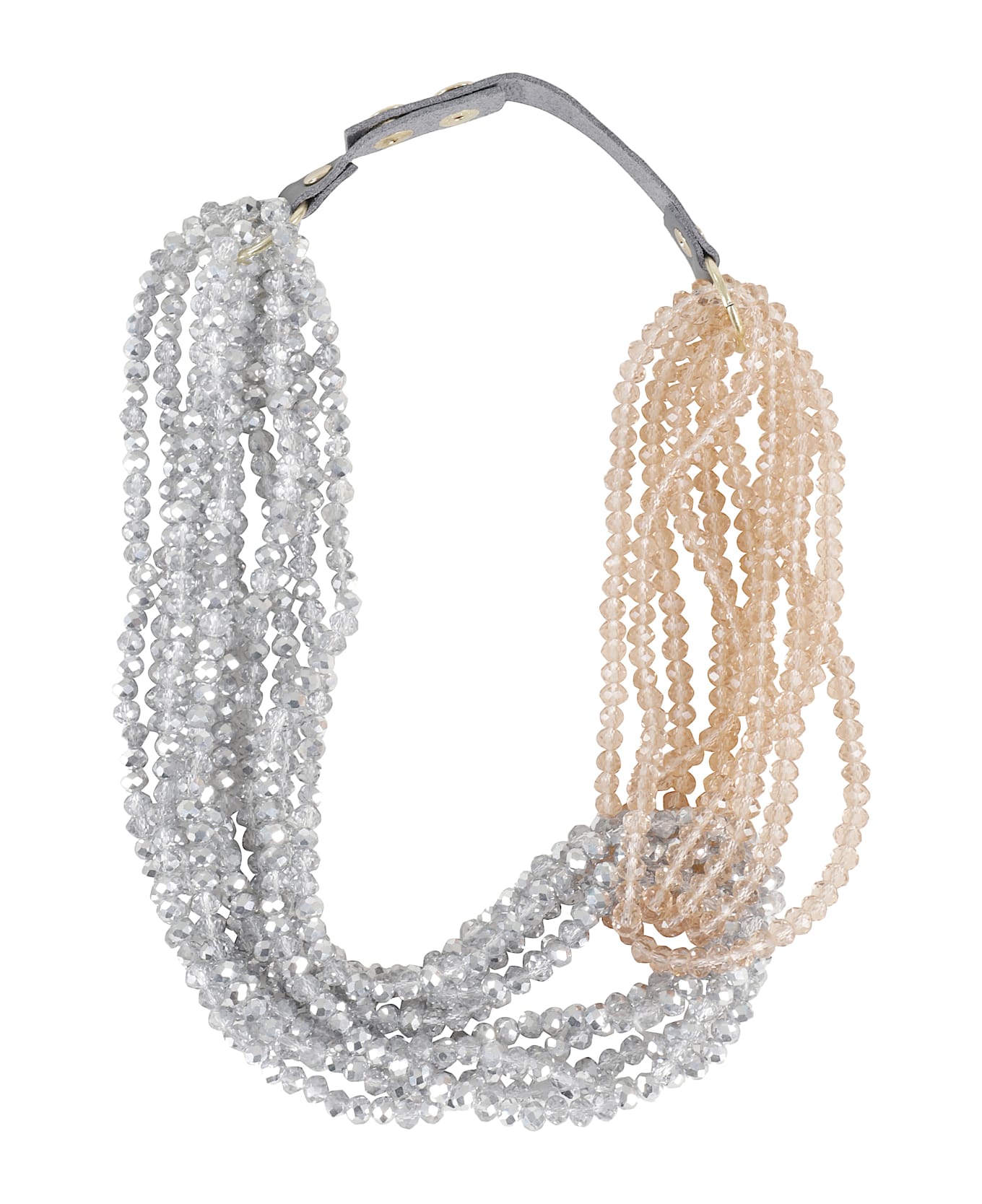 Cleopatra necklace - Antonelli - Silver and nude color - Made with beads - Adjustable leather strap closure