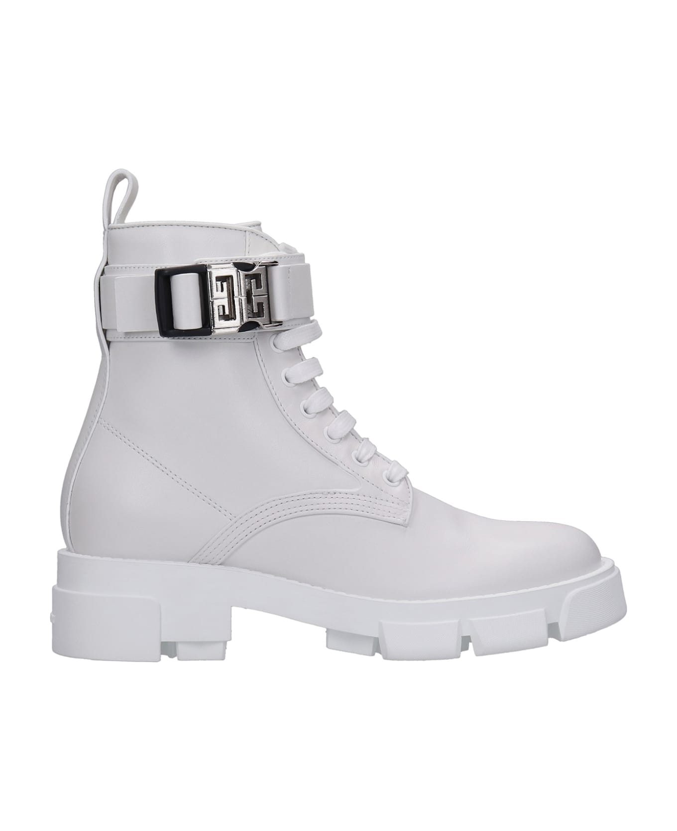 Combat Combat boots in white leather, almond toe, laces, metallic logo, silver hardware, side zip closure, 100% leather, Made in Italy