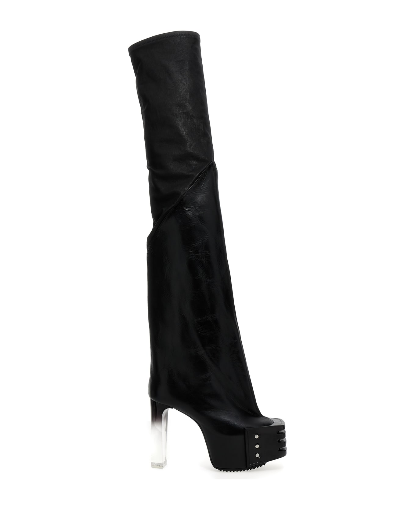 Oblique Platforms' leather boots with tone-on-tone platform and degradè color plexiglass heel.