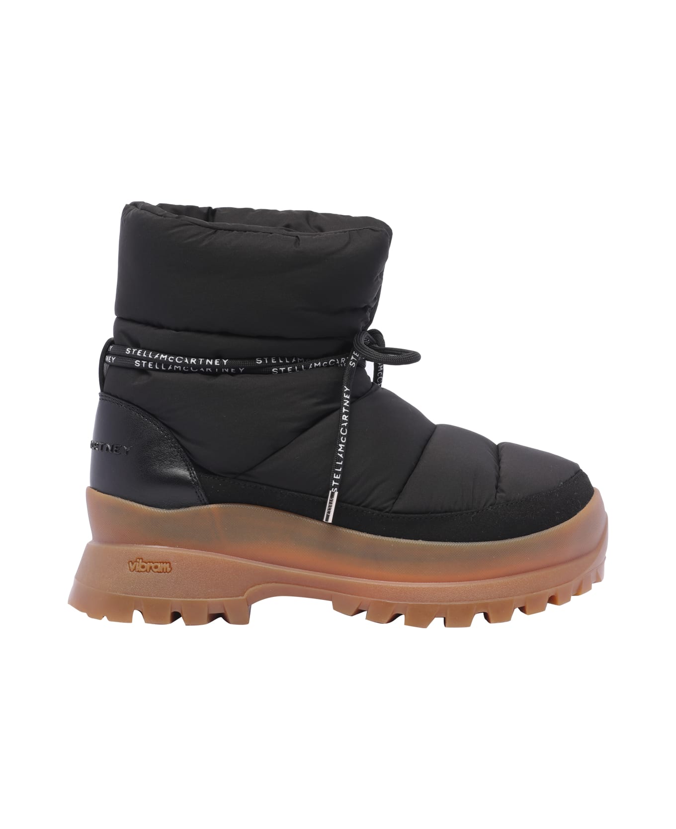 Stella McCartney padded trace boots, round toe, lace closure, fabric upper, rubber sole