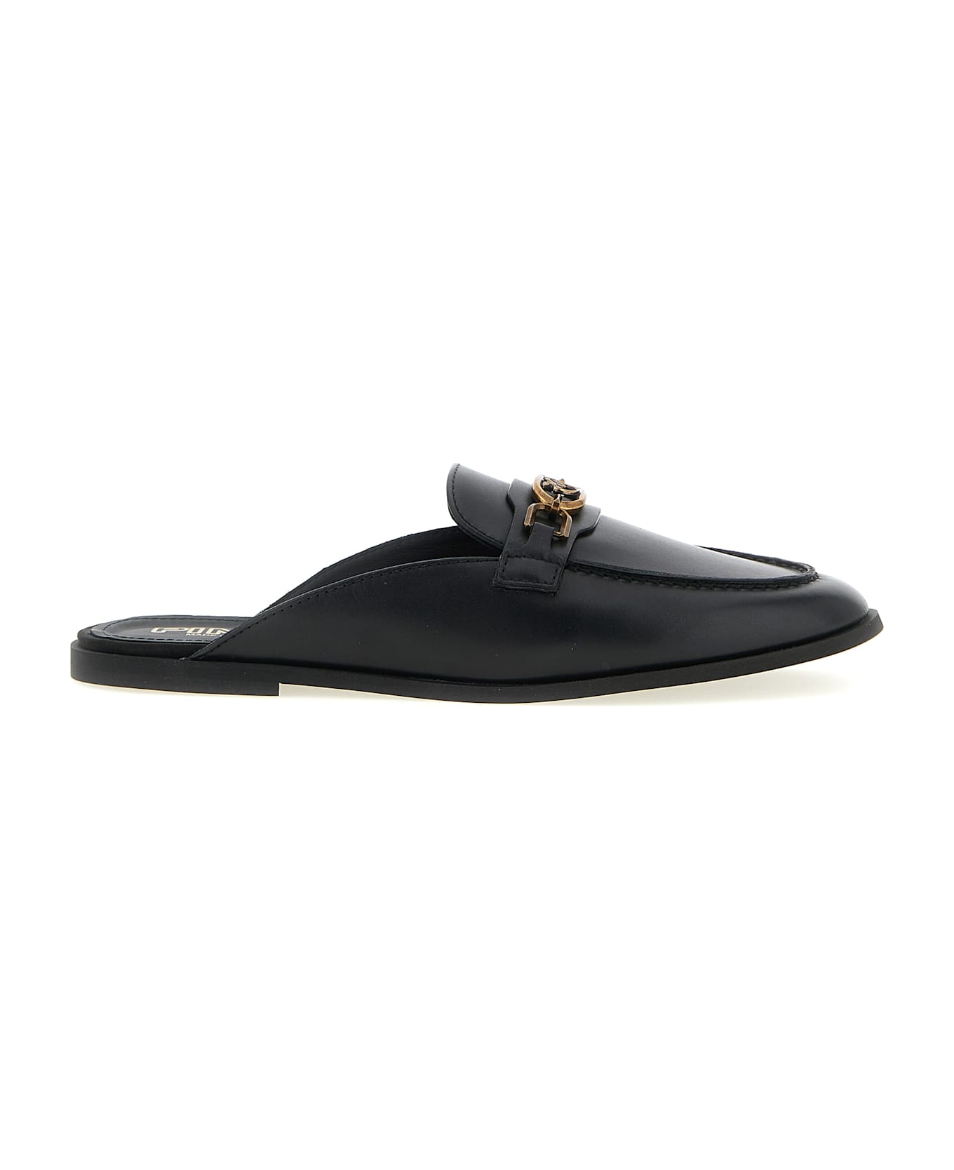 'Naty 09' leather sabots, front metal logo, rubber sole.