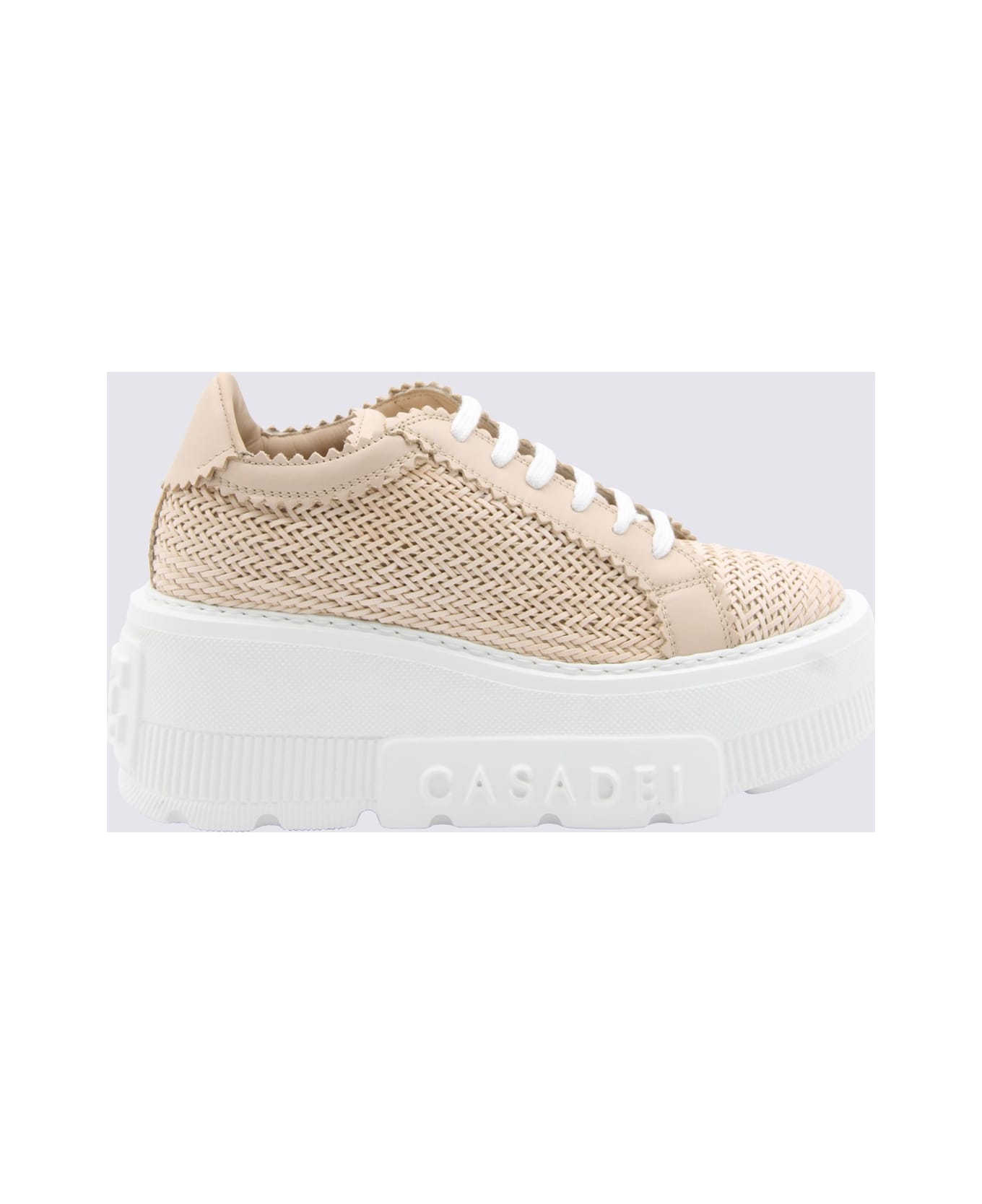 Beige leather sneakers from Casadei featuring round toe, woven desing, laces fastening, side logo, branded insole and chunky rubber sole. Composition: _cover, 100% Le Sole, 100% Elastodiene