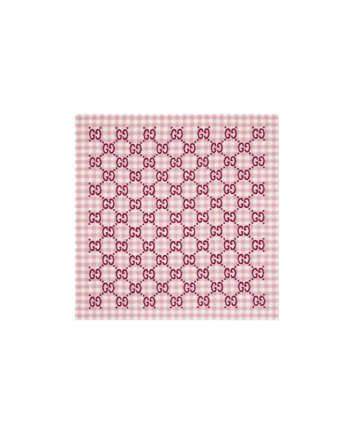 • checked Wool Blanket With Pink And White Gg Jacquard