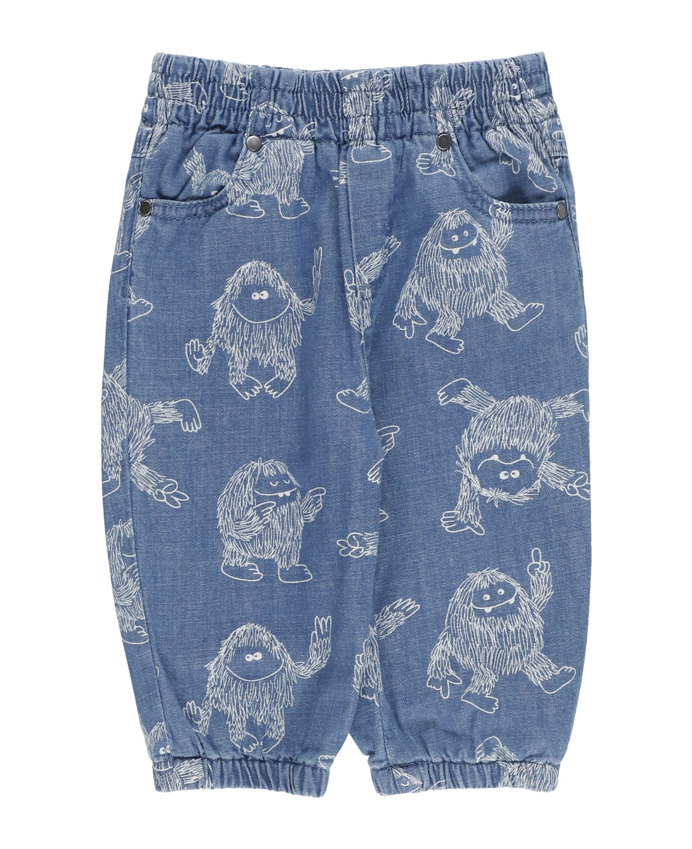 - Blue Stella Mc Cartney Junior cotton jeans for girl - Elastic waist - Two side slit pockets - Elastic hem - All-over contrasting color pattern - Rear logoed tab
