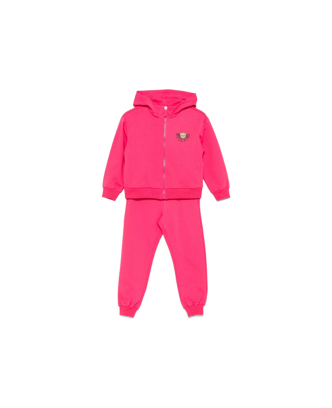 pink hooded top zip fastening logo print elasticated waistband cuffed hems